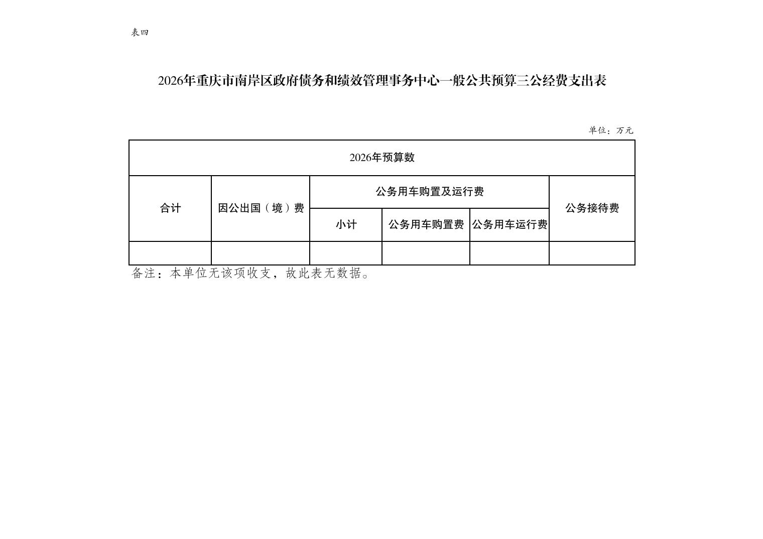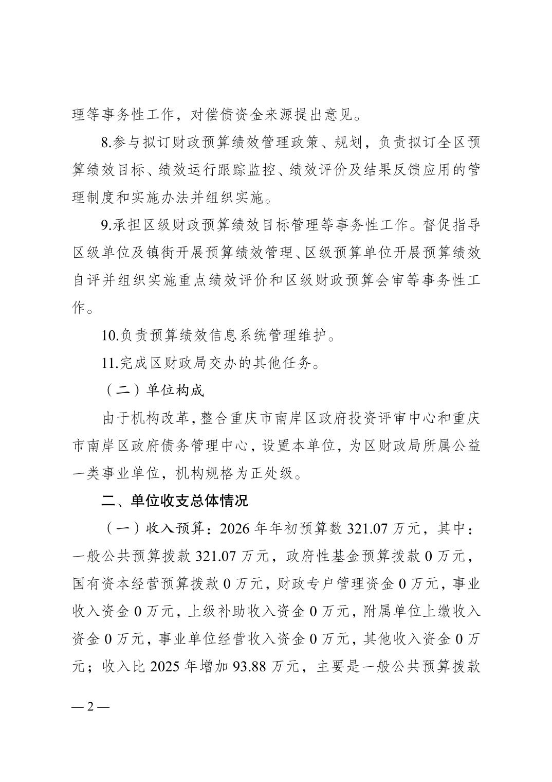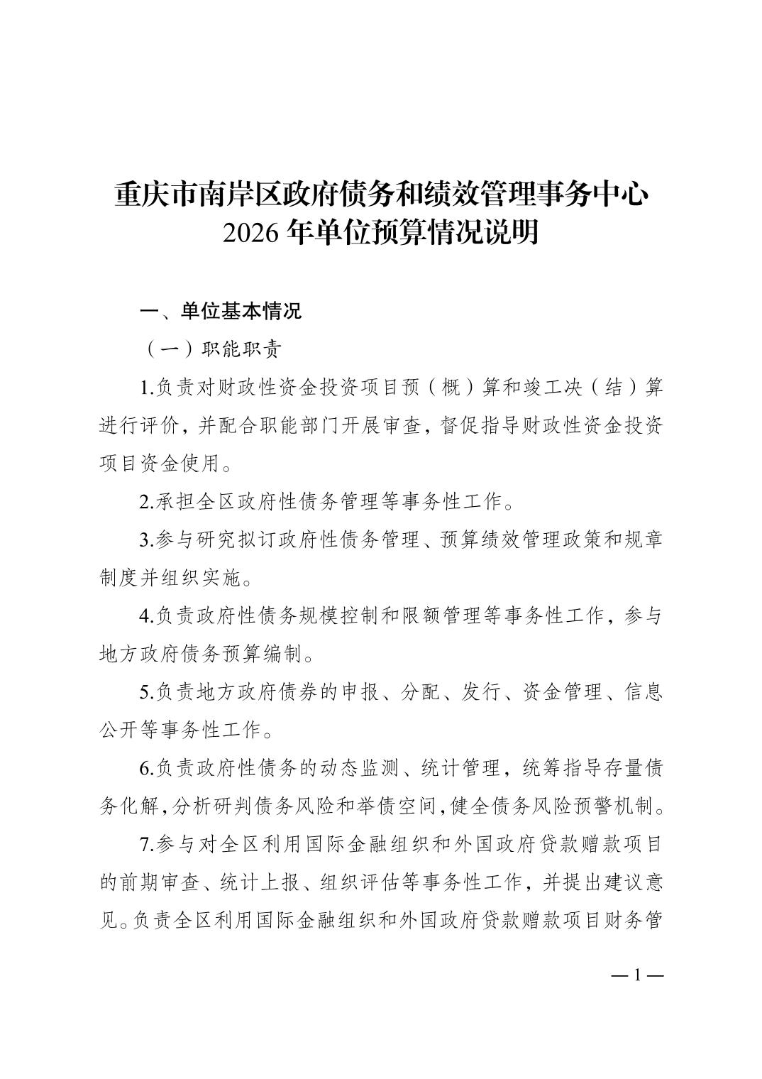 重庆市南岸区政府债务和绩效管理事务中心2026年单位预算情况说明