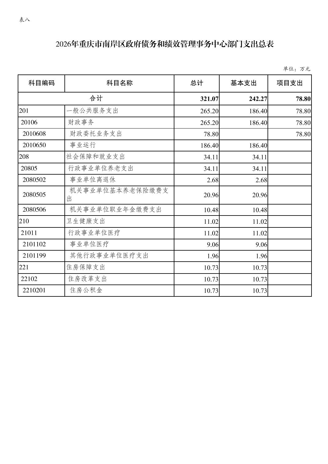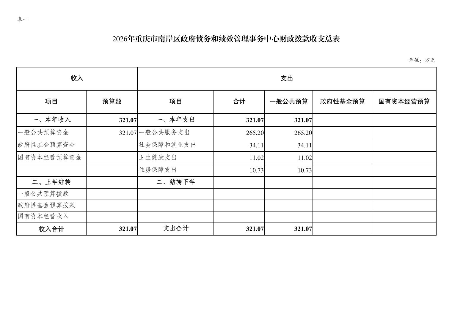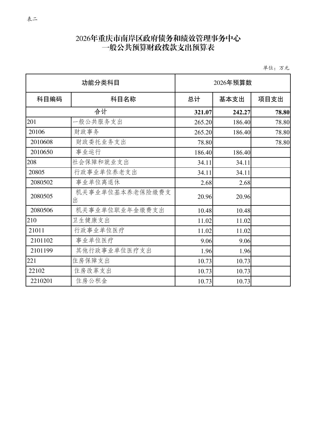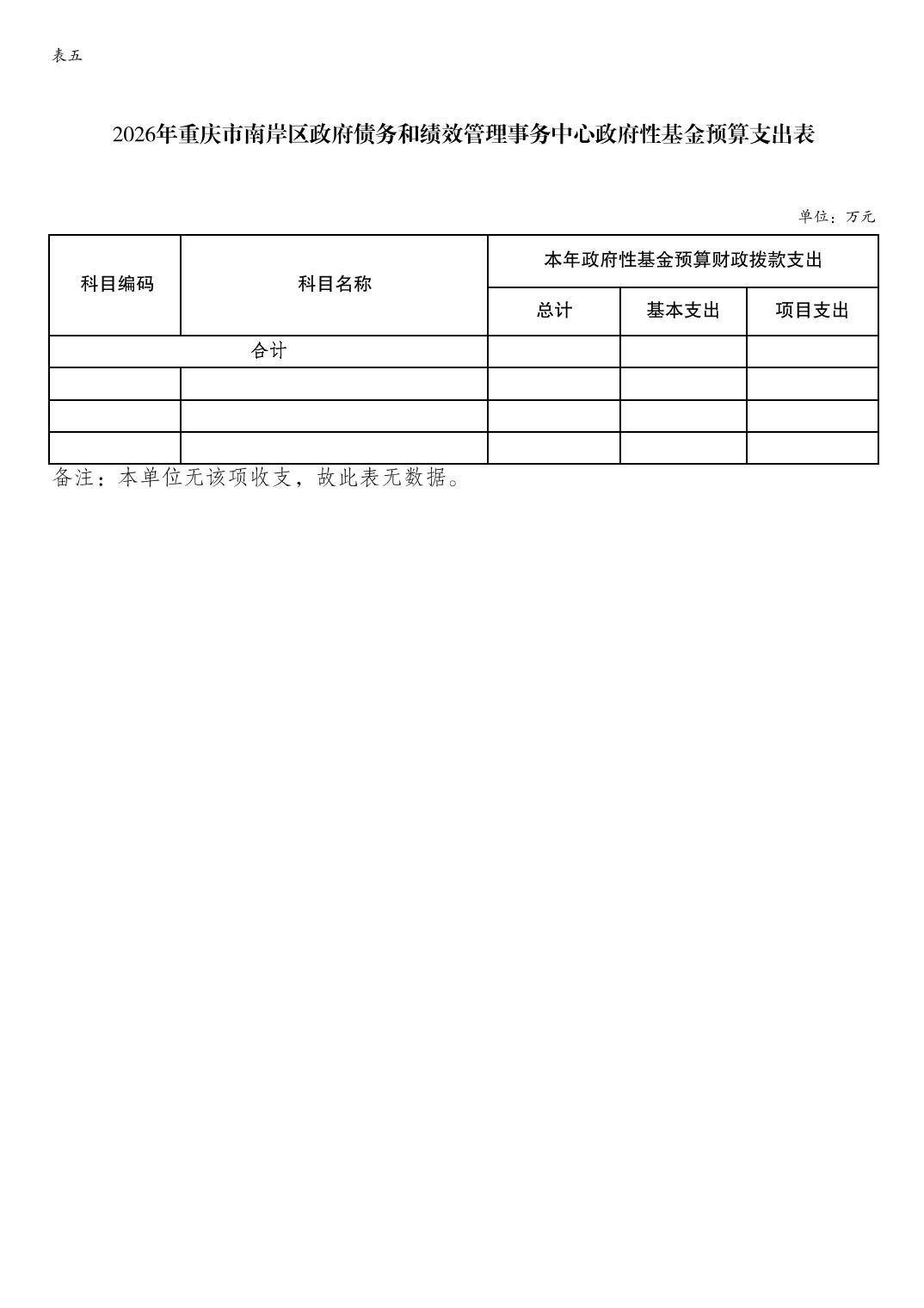 重庆市南岸区政府债务和绩效管理事务中心2026年单位预算情况说明