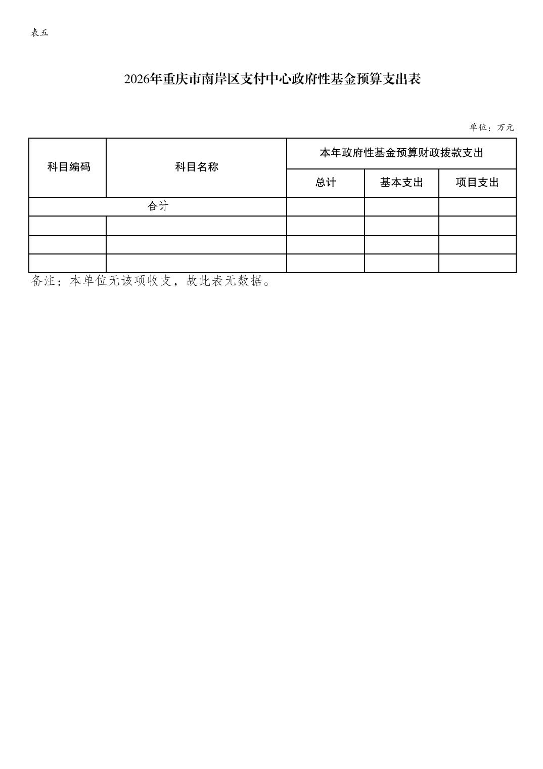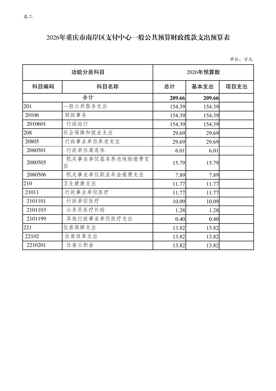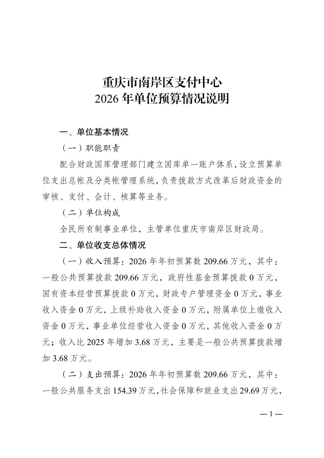 重庆市南岸区支付中心2026年单位预算情况说明