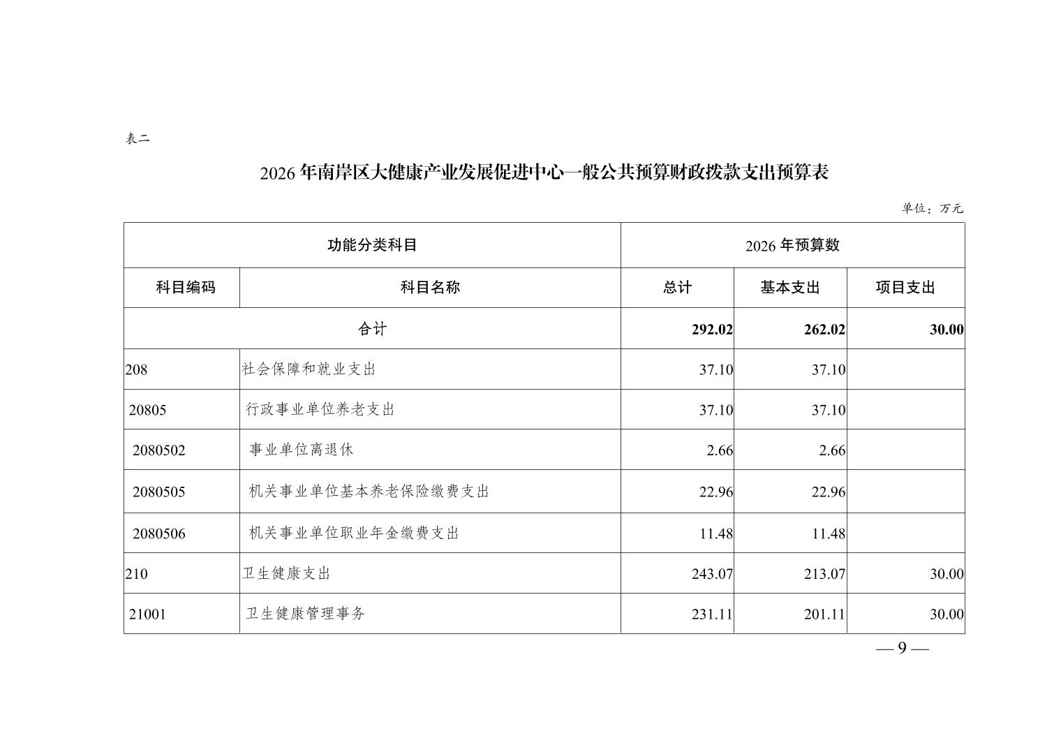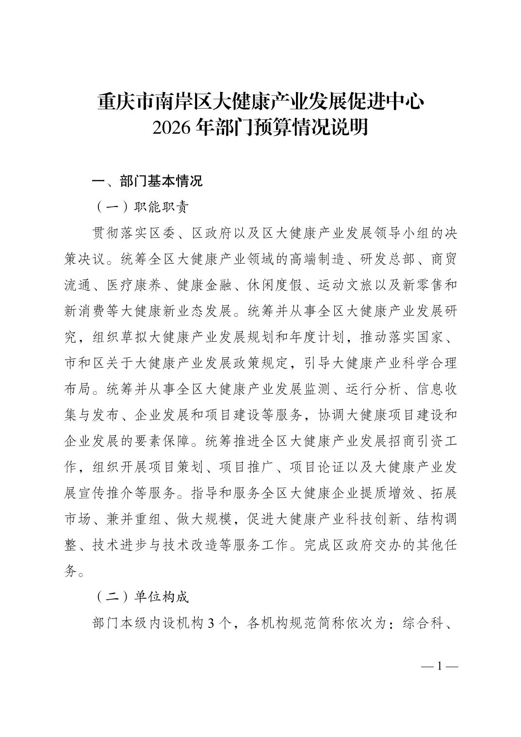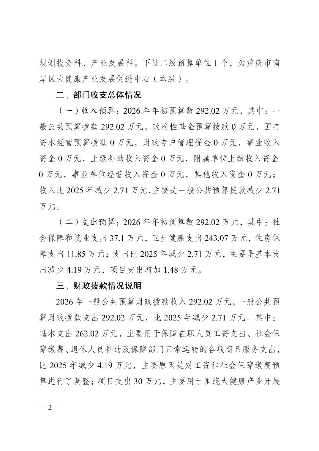 重庆市南岸区大健康产业发展促进中心2026年部门预算情况说明