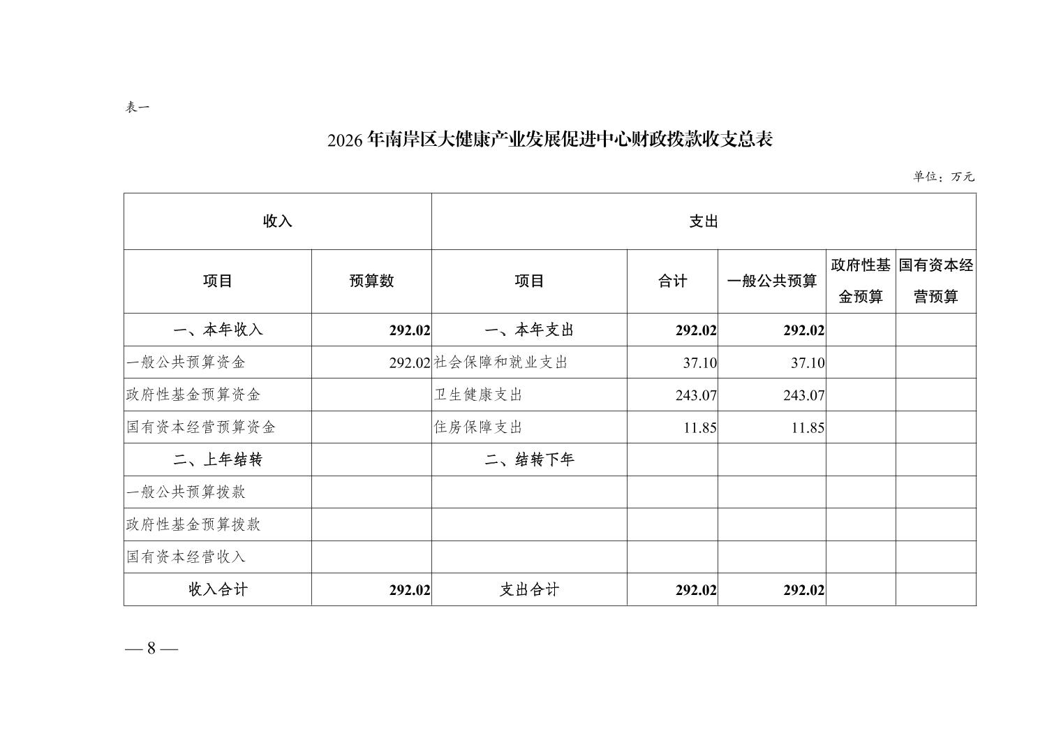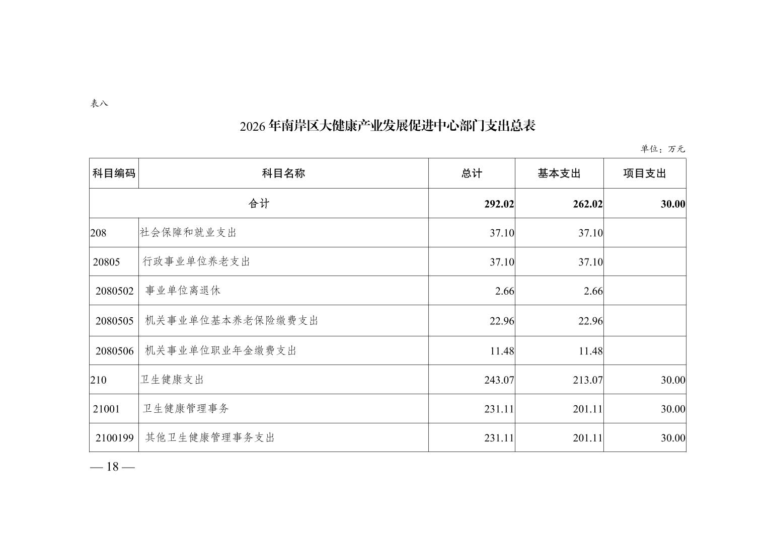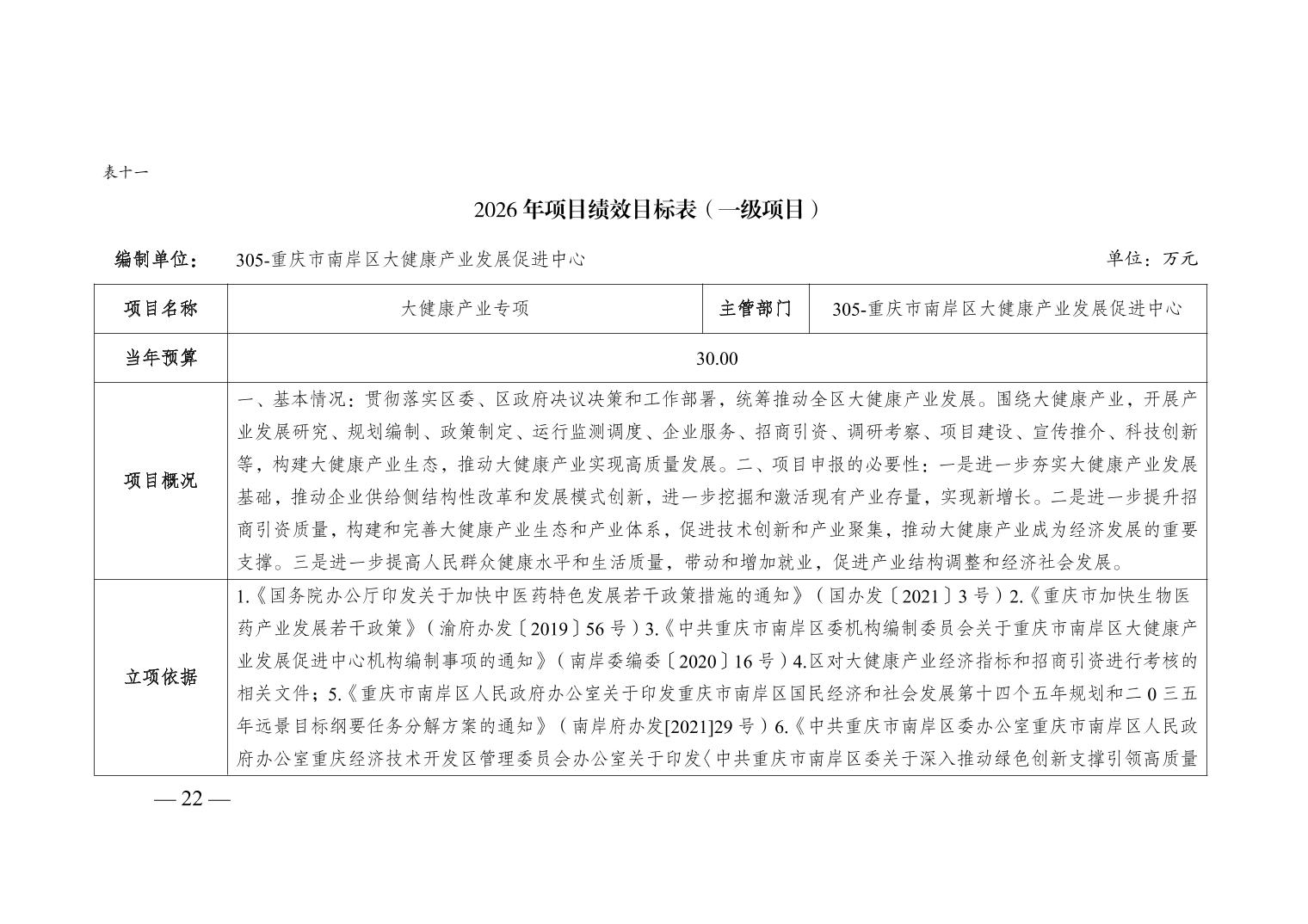 重庆市南岸区大健康产业发展促进中心2026年部门预算情况说明