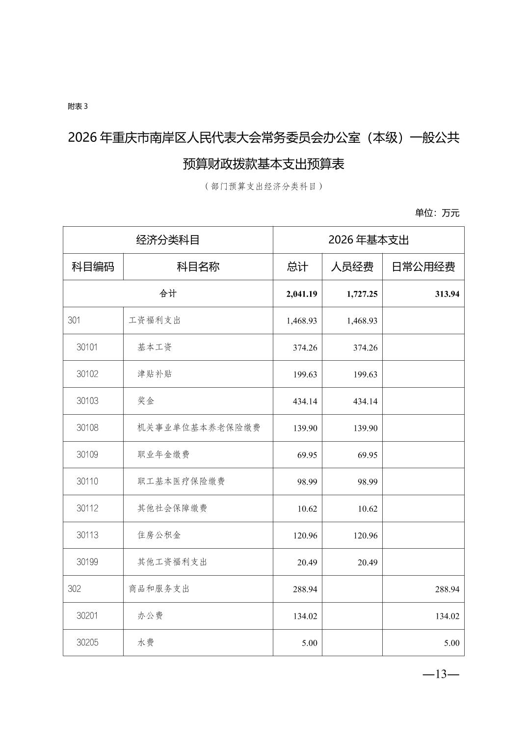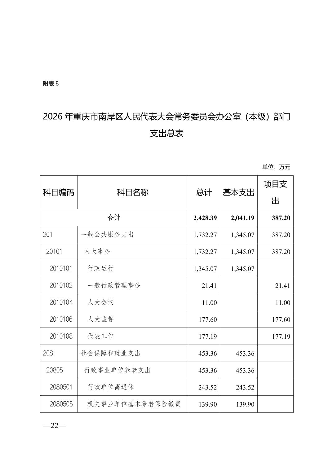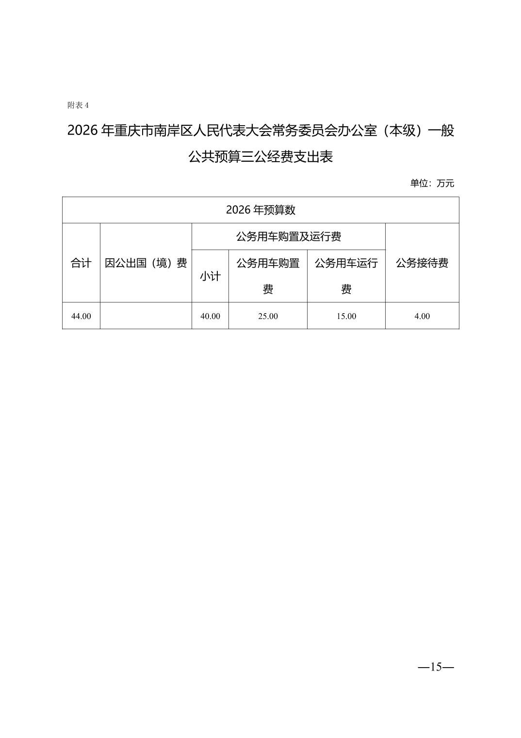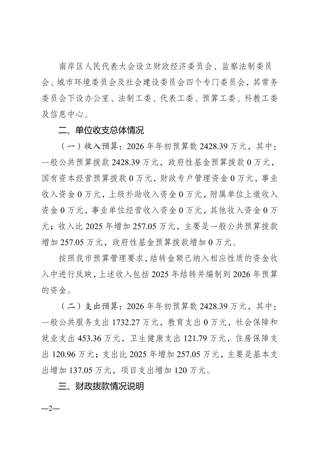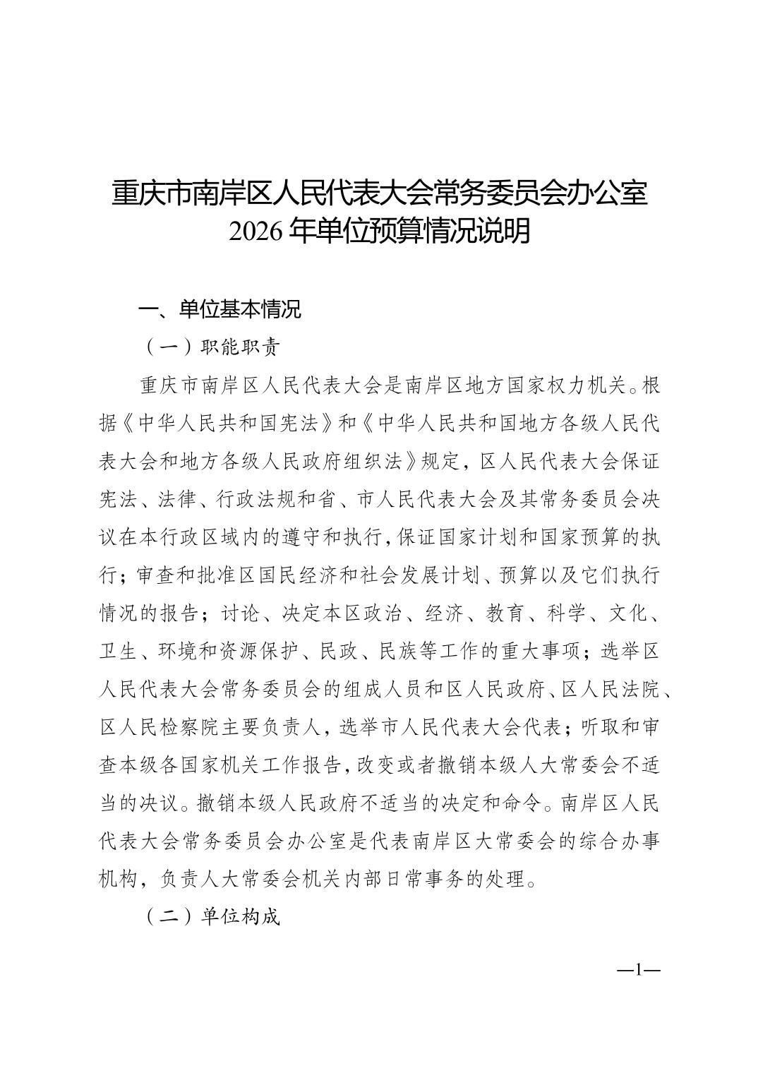 重庆市南岸区人民代表大会常务委员会办公室(本级)2026年单位预算情况说明