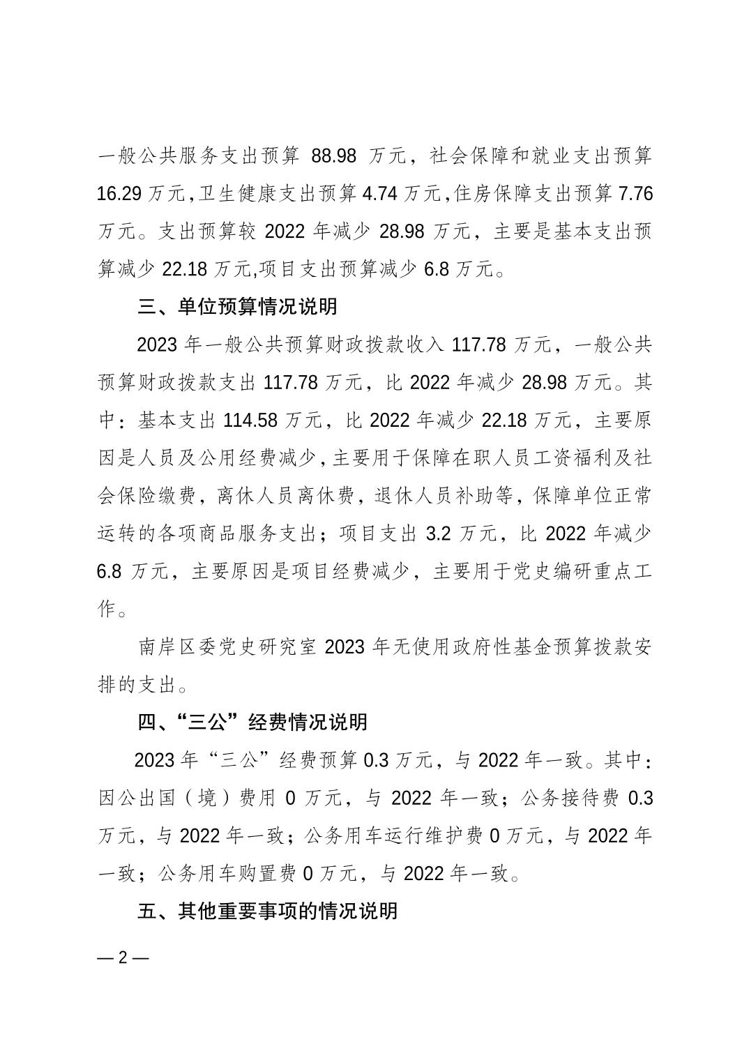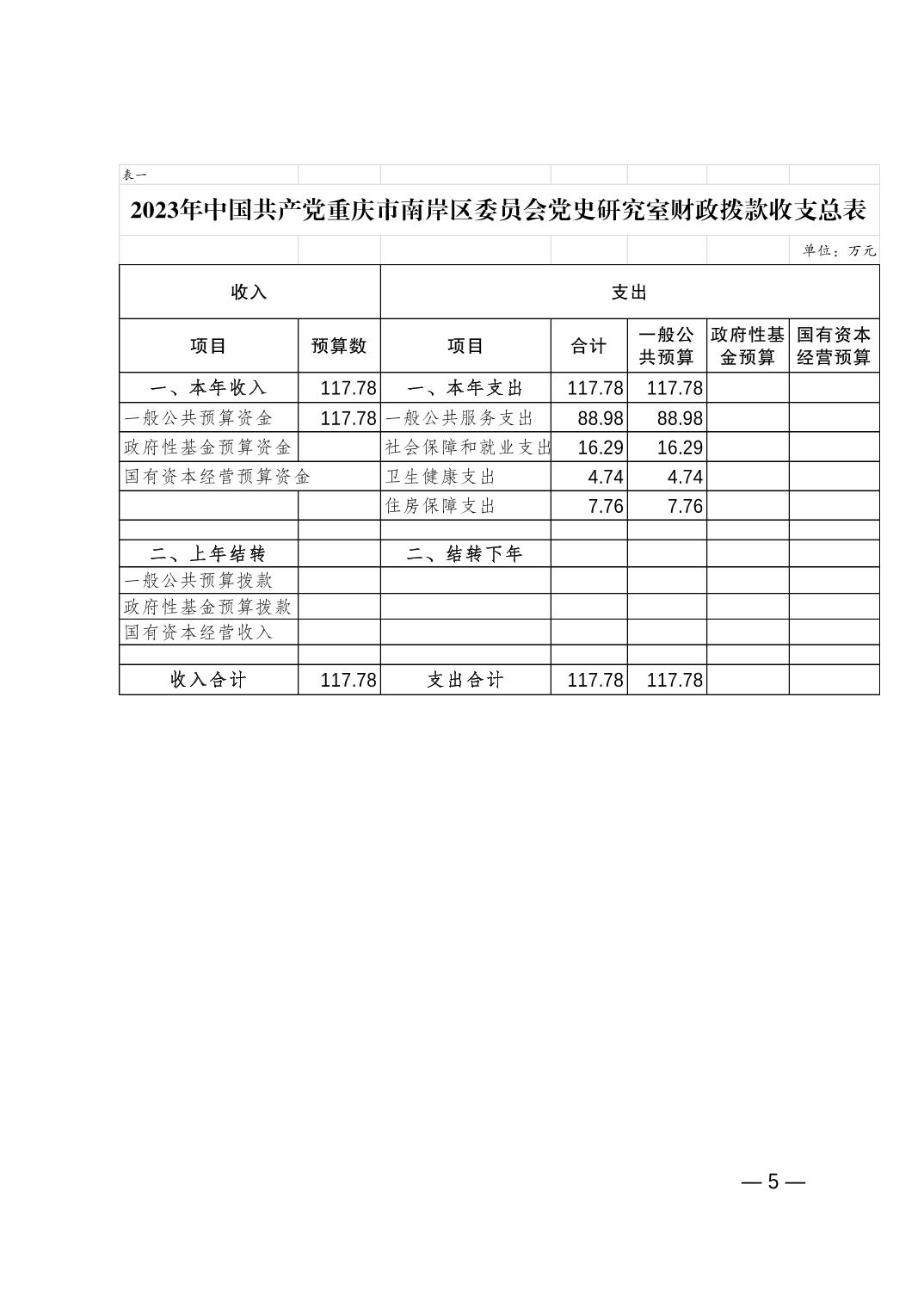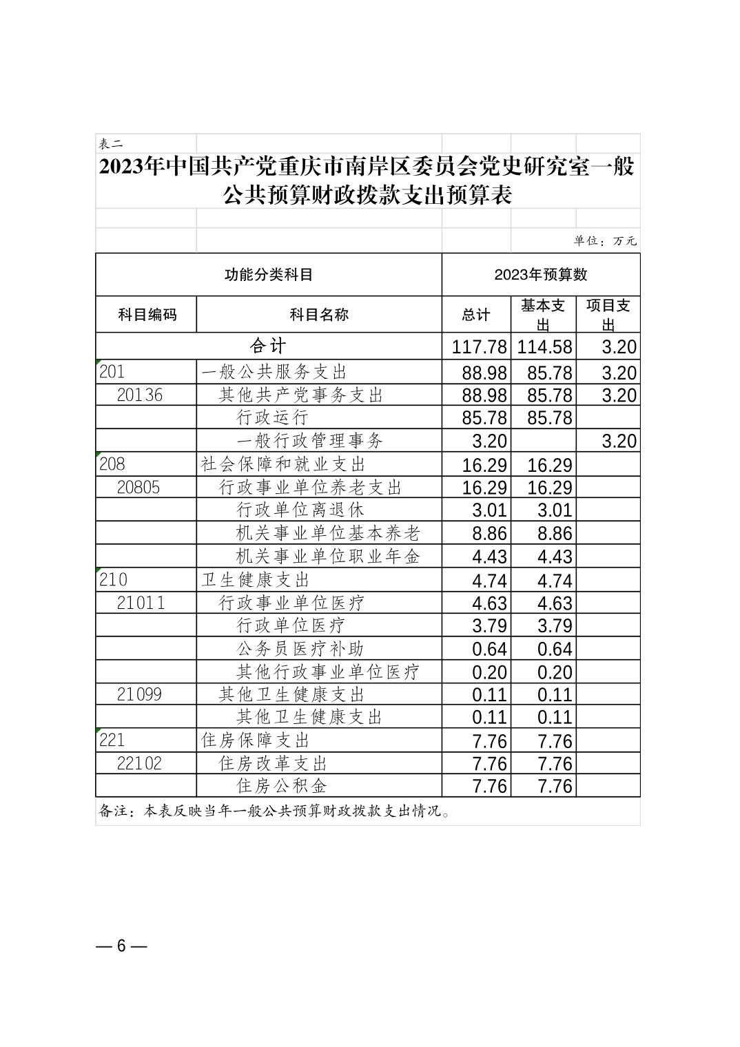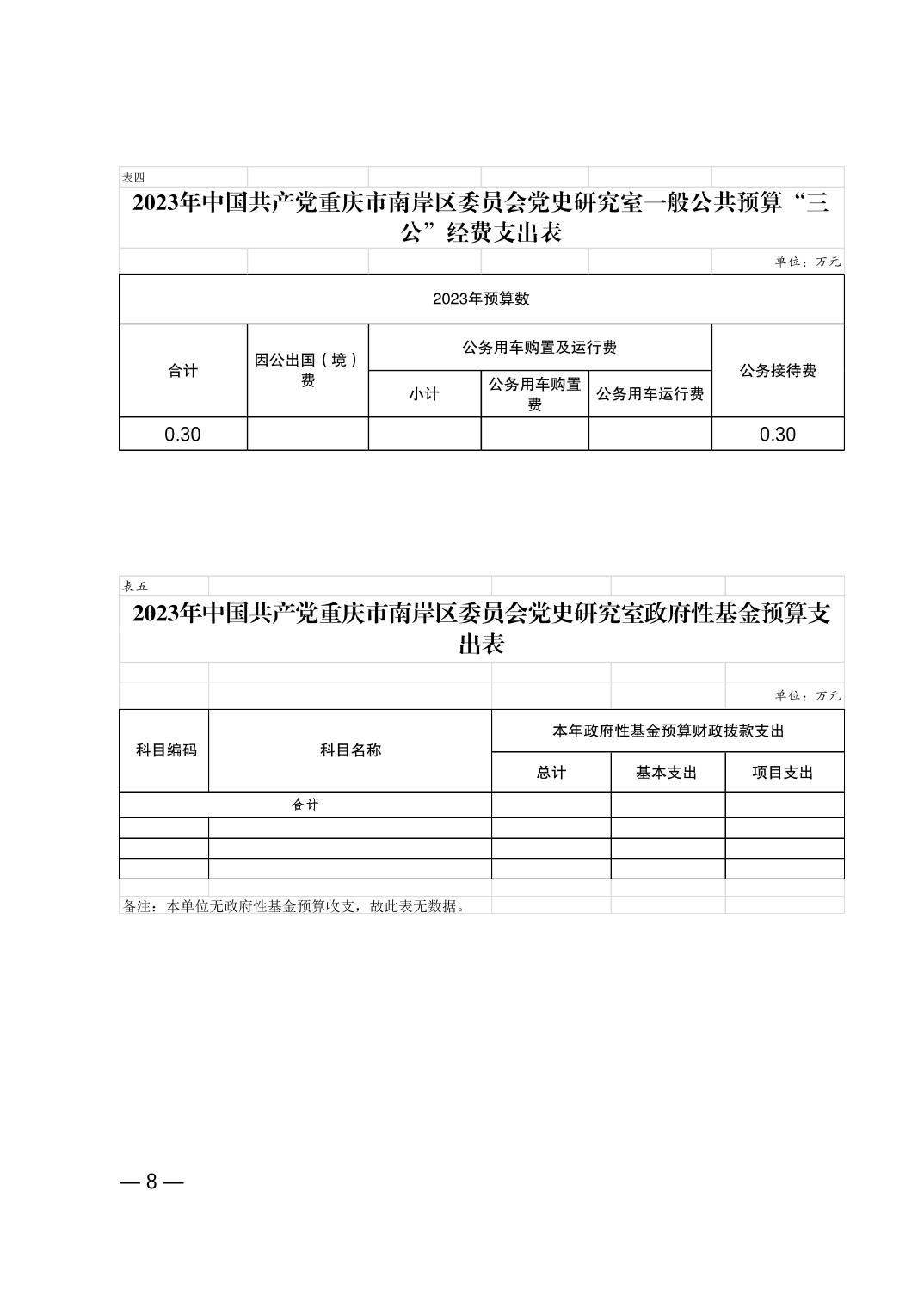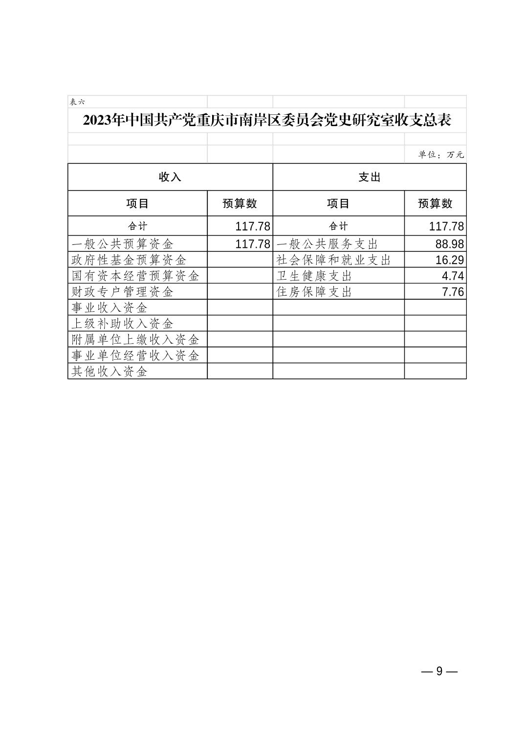 中共重庆市南岸区委员会党史研究室2023年部门预算公开