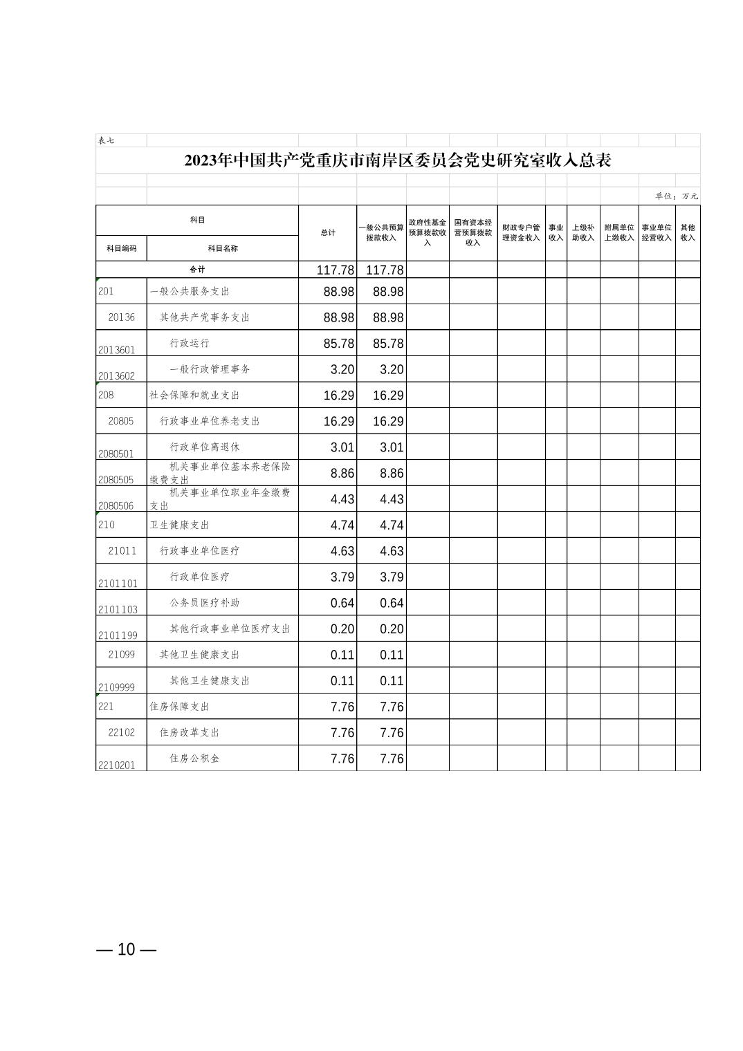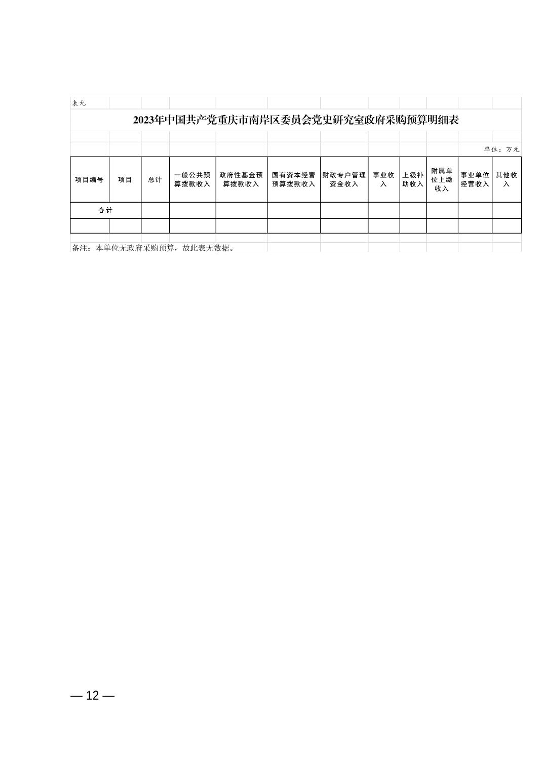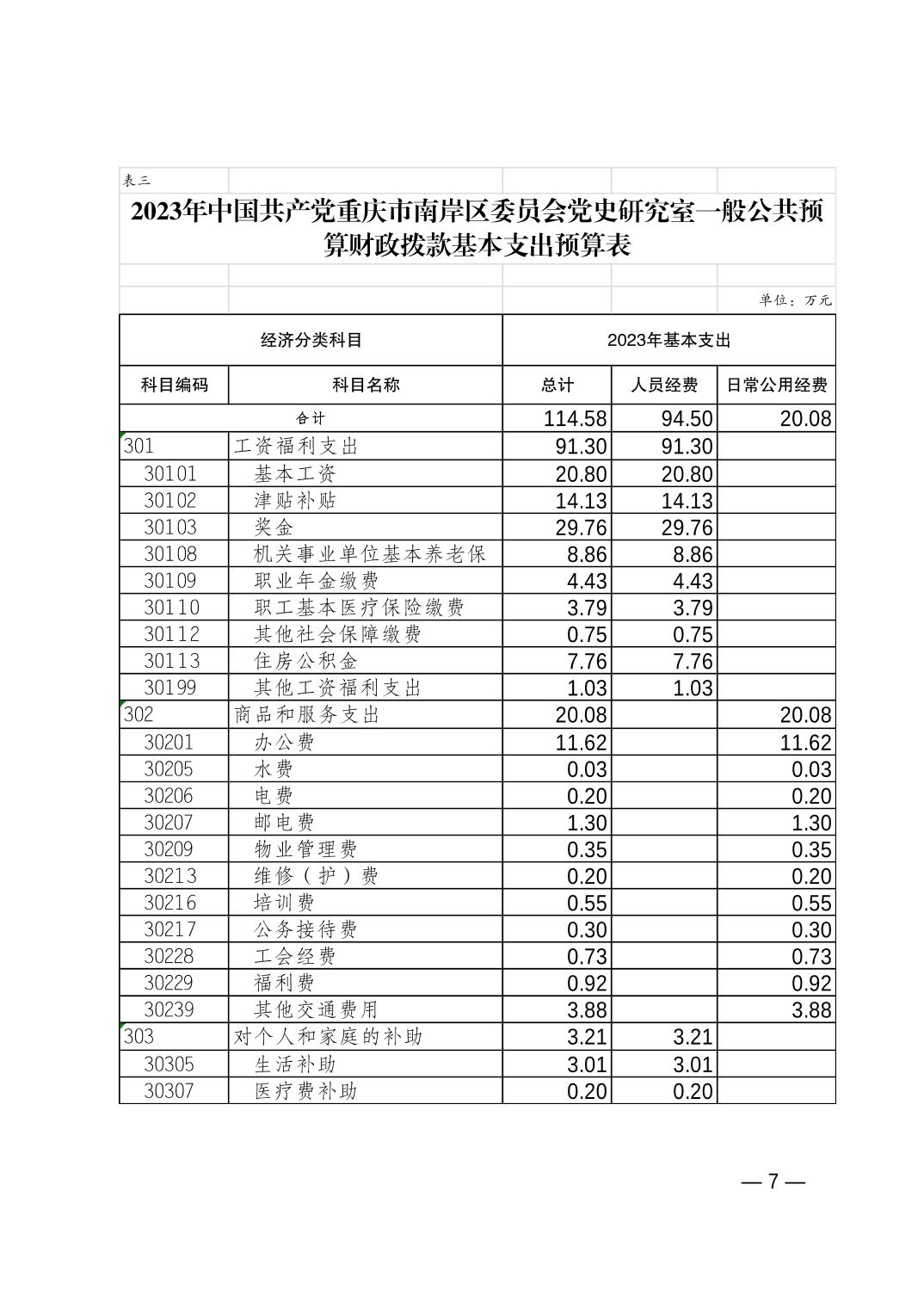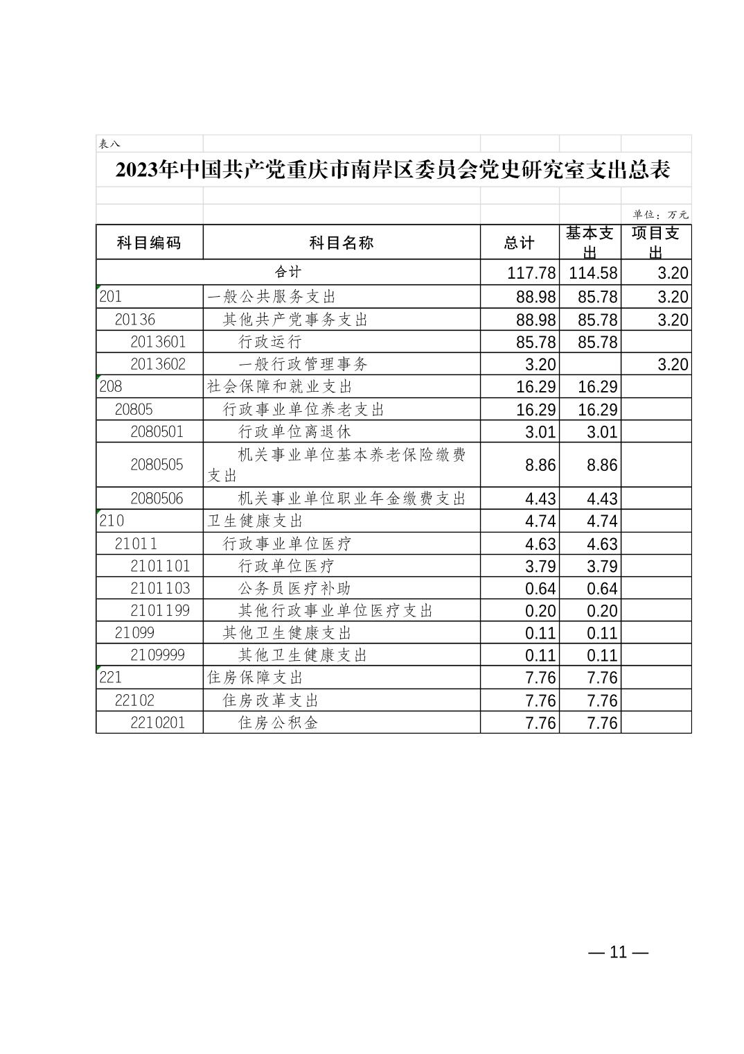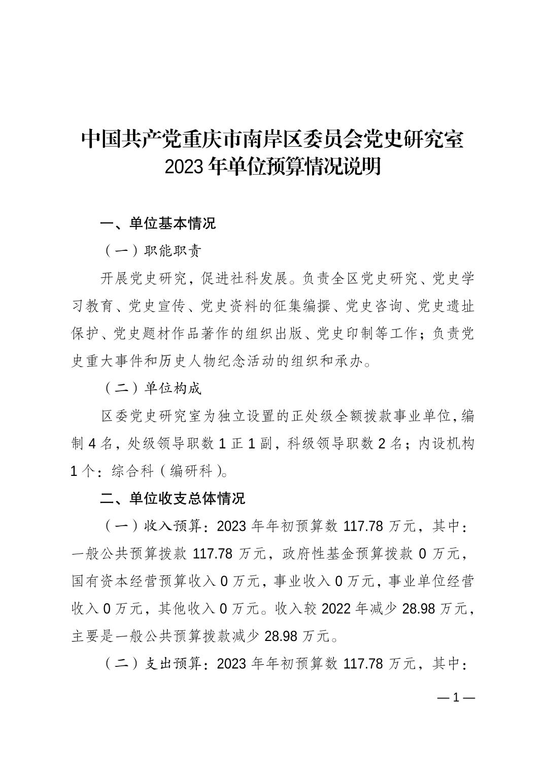 中共重庆市南岸区委员会党史研究室2023年部门预算公开