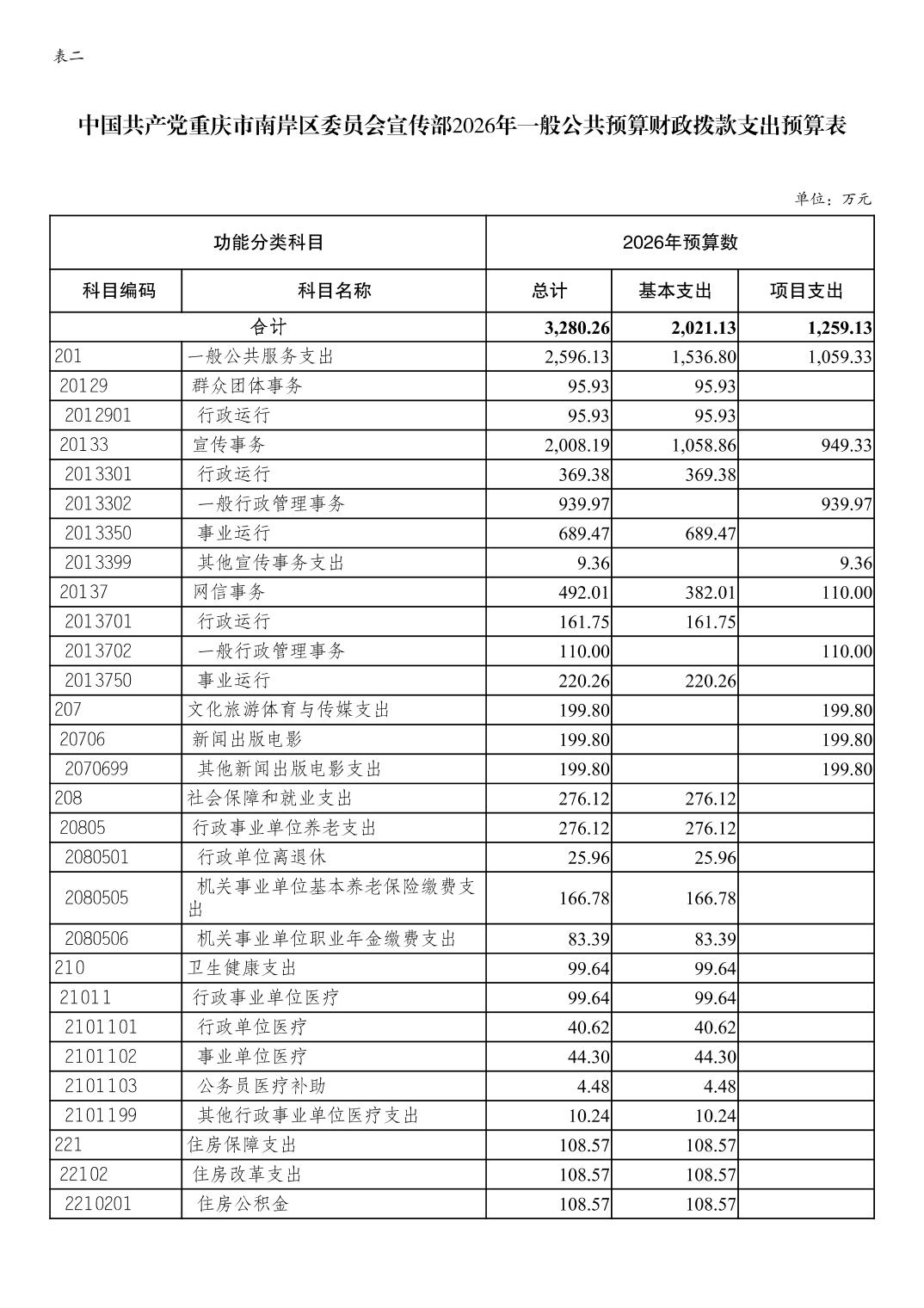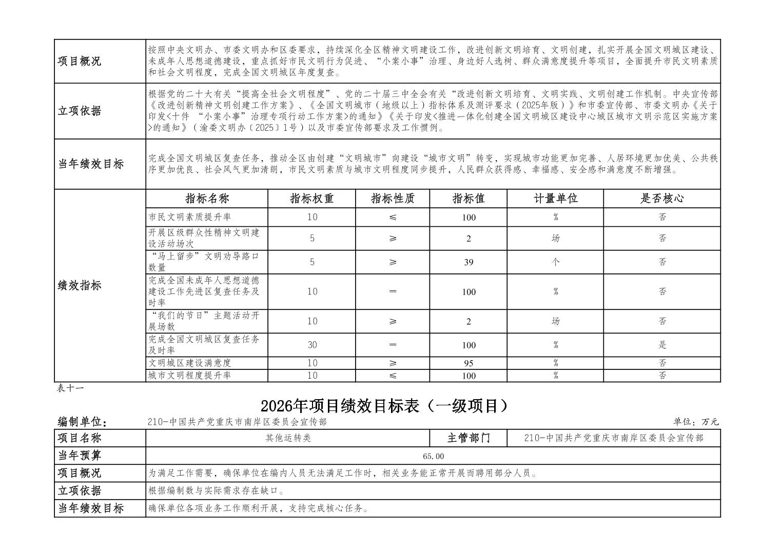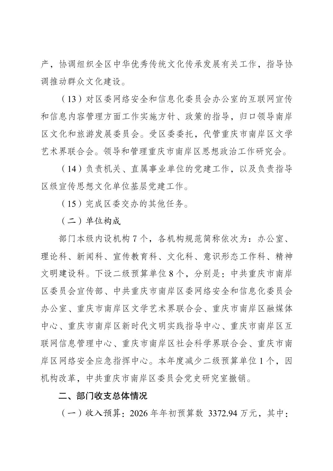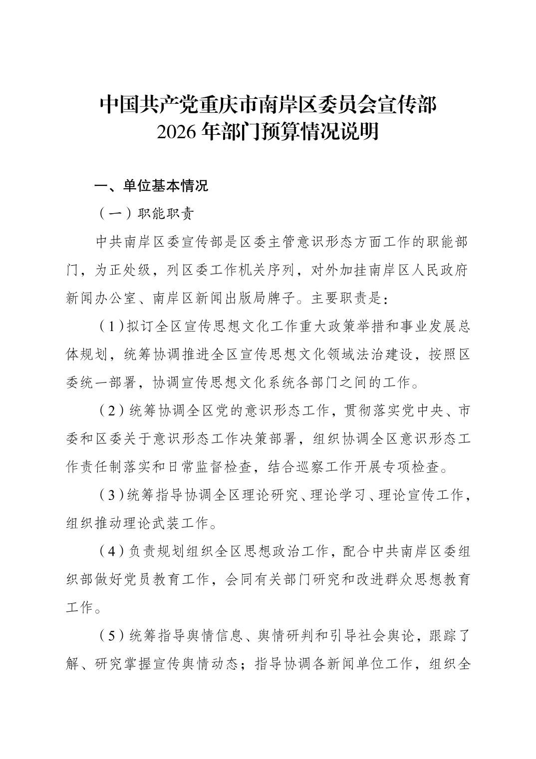 中国共产党重庆市南岸区委宣传部2026年部门预算情况说明