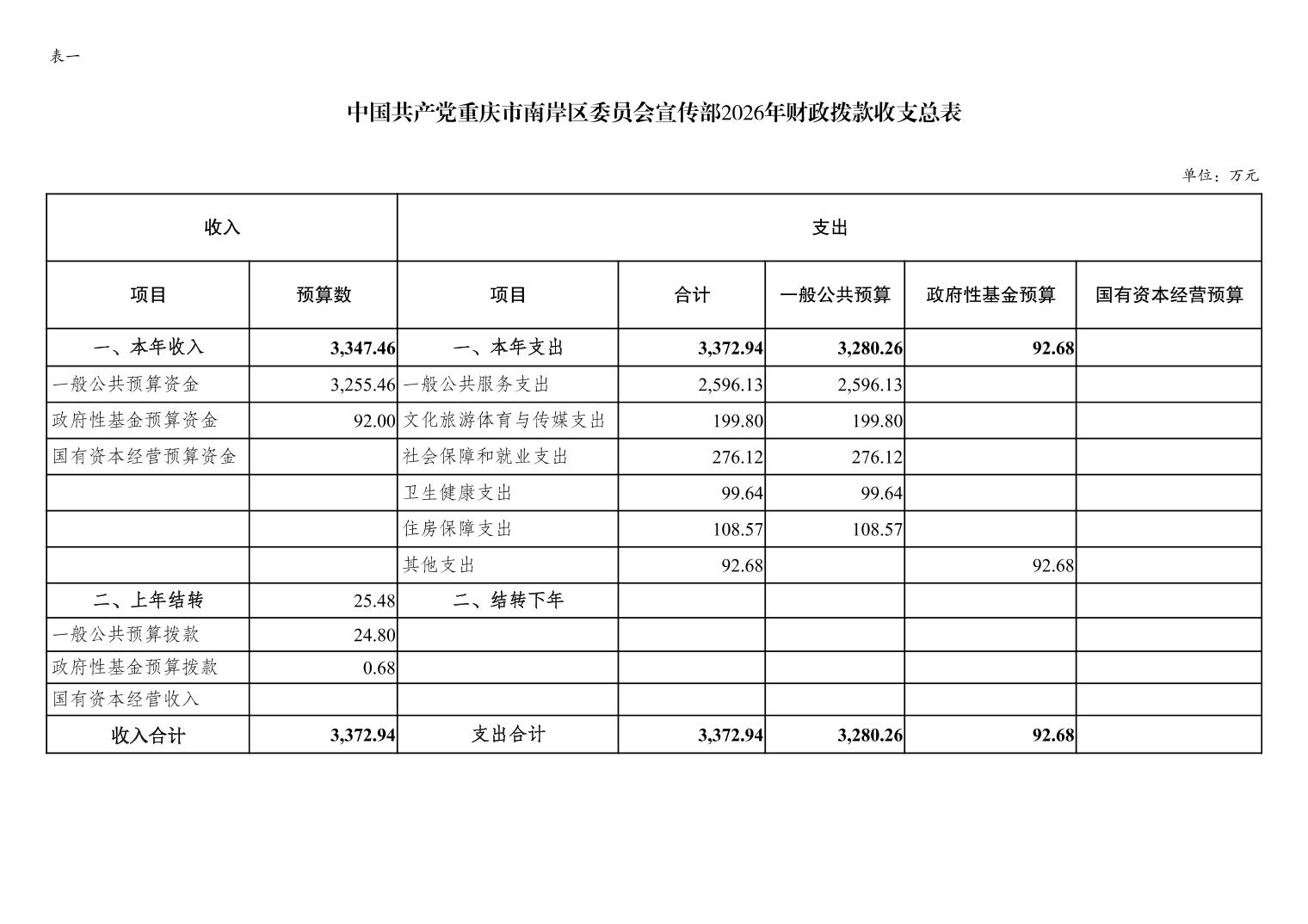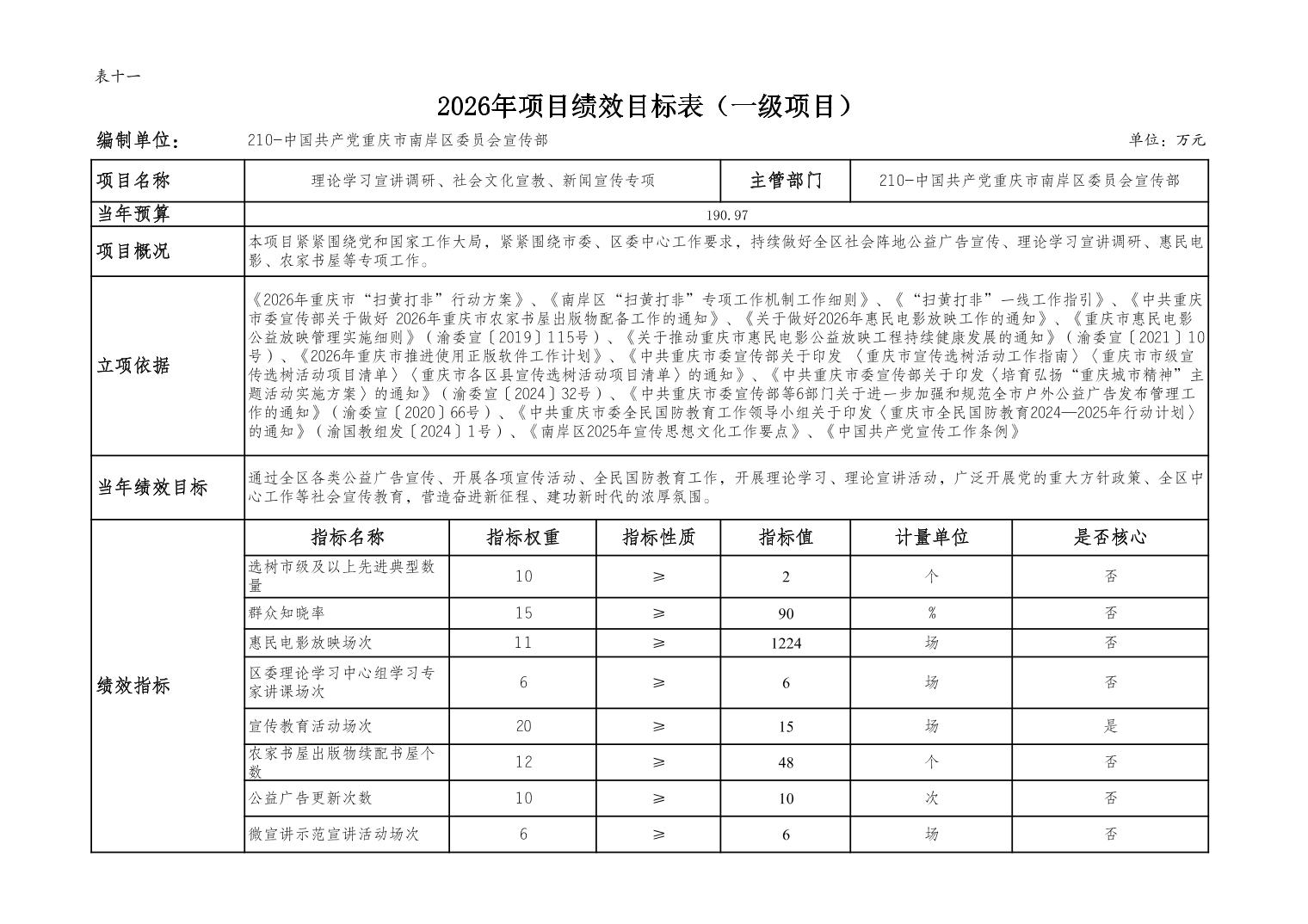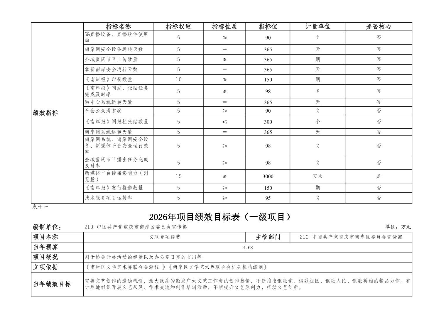 中国共产党重庆市南岸区委宣传部2026年部门预算情况说明