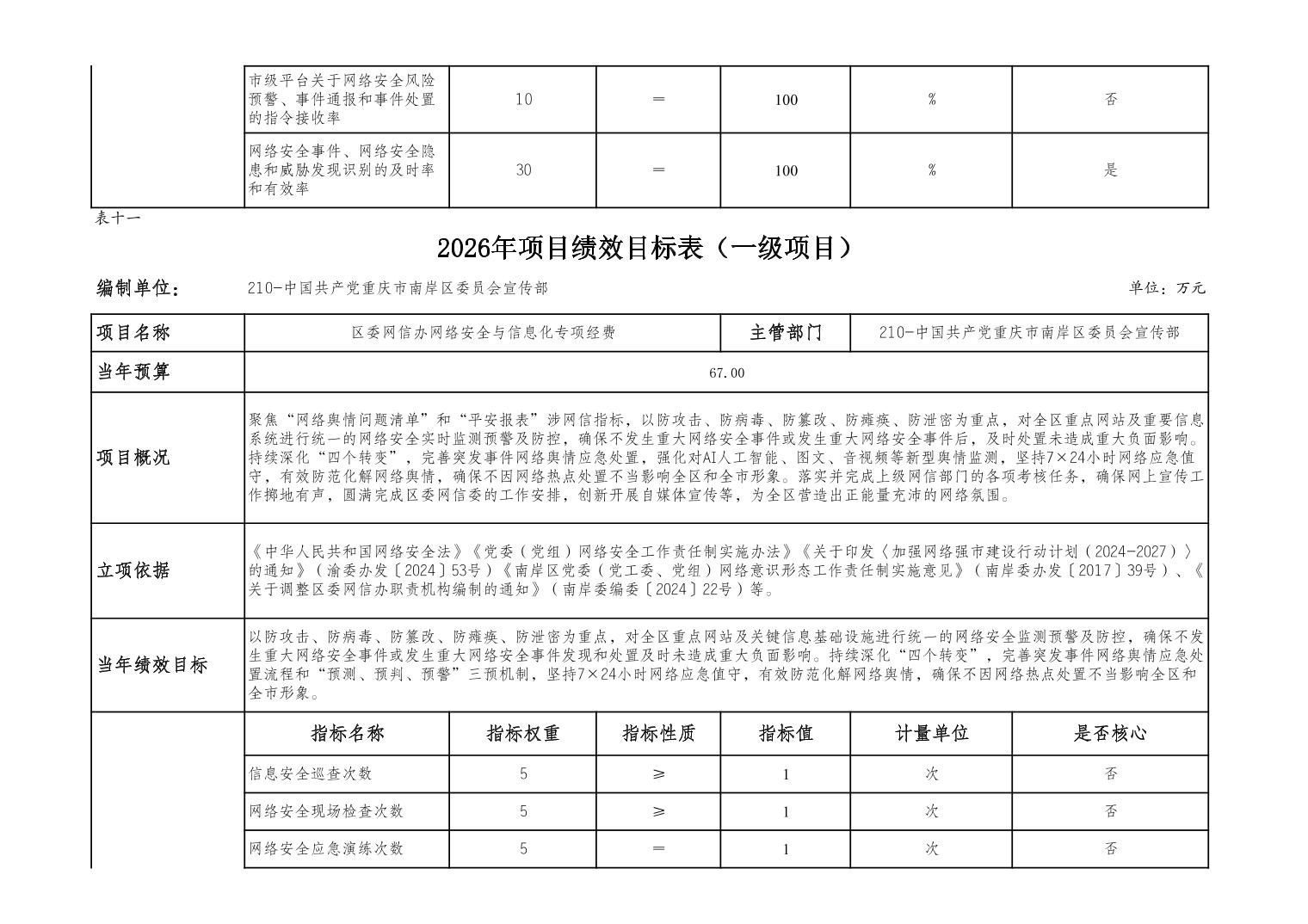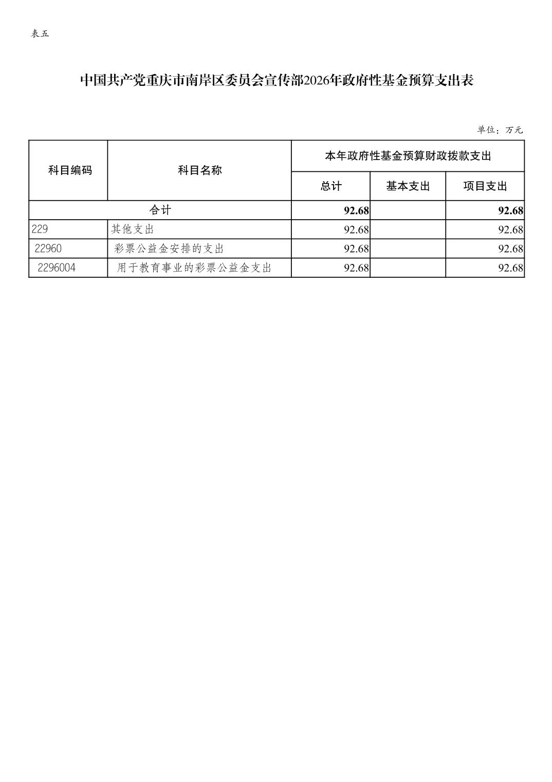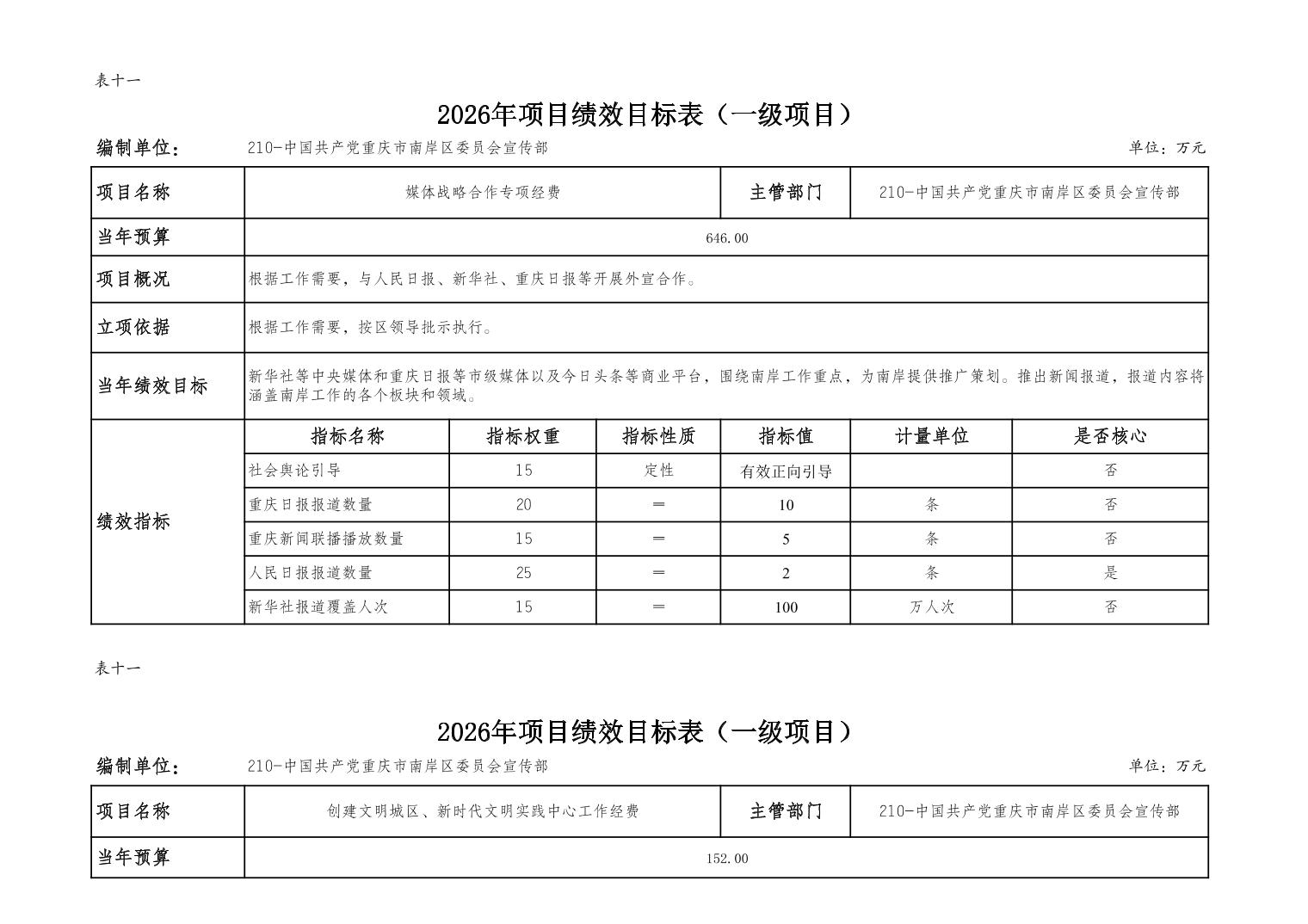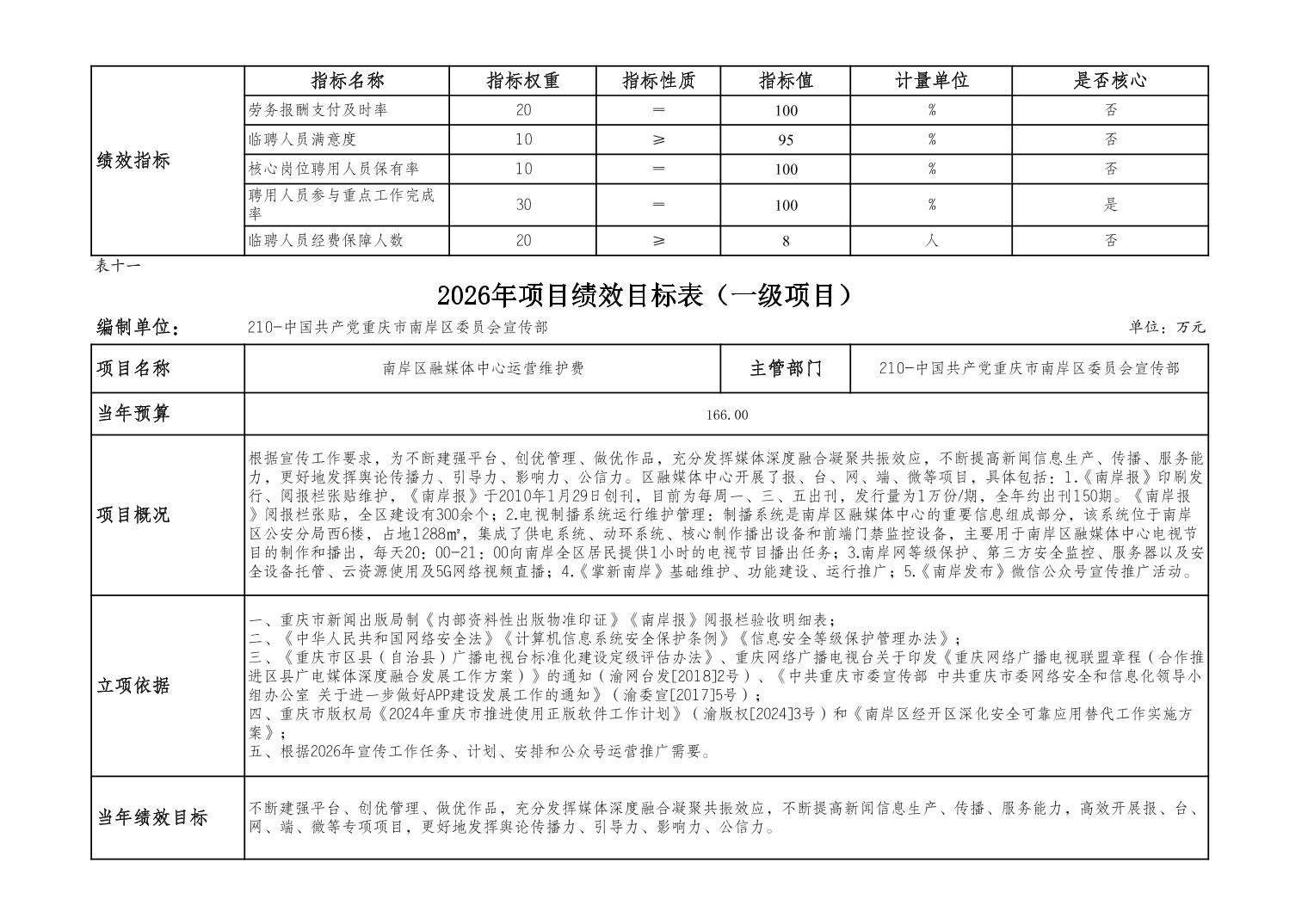 中国共产党重庆市南岸区委宣传部2026年部门预算情况说明