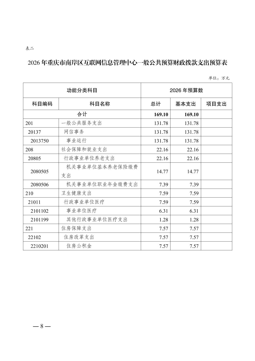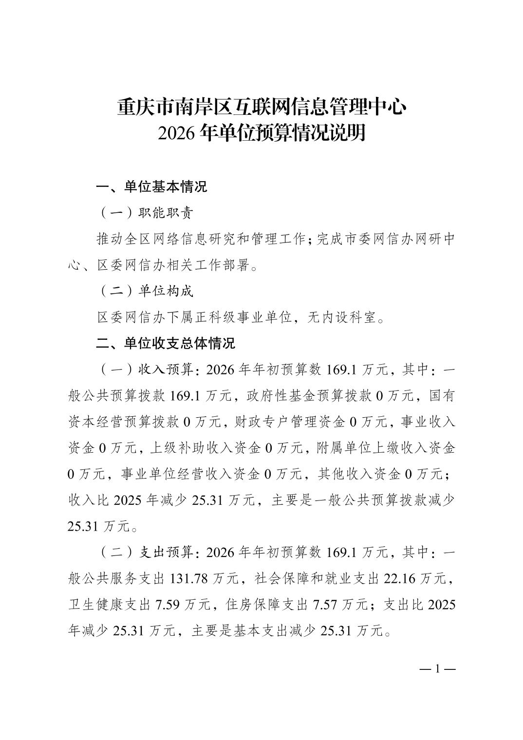 重庆市南岸区互联网信息管理中心2026年单位预算情况说明