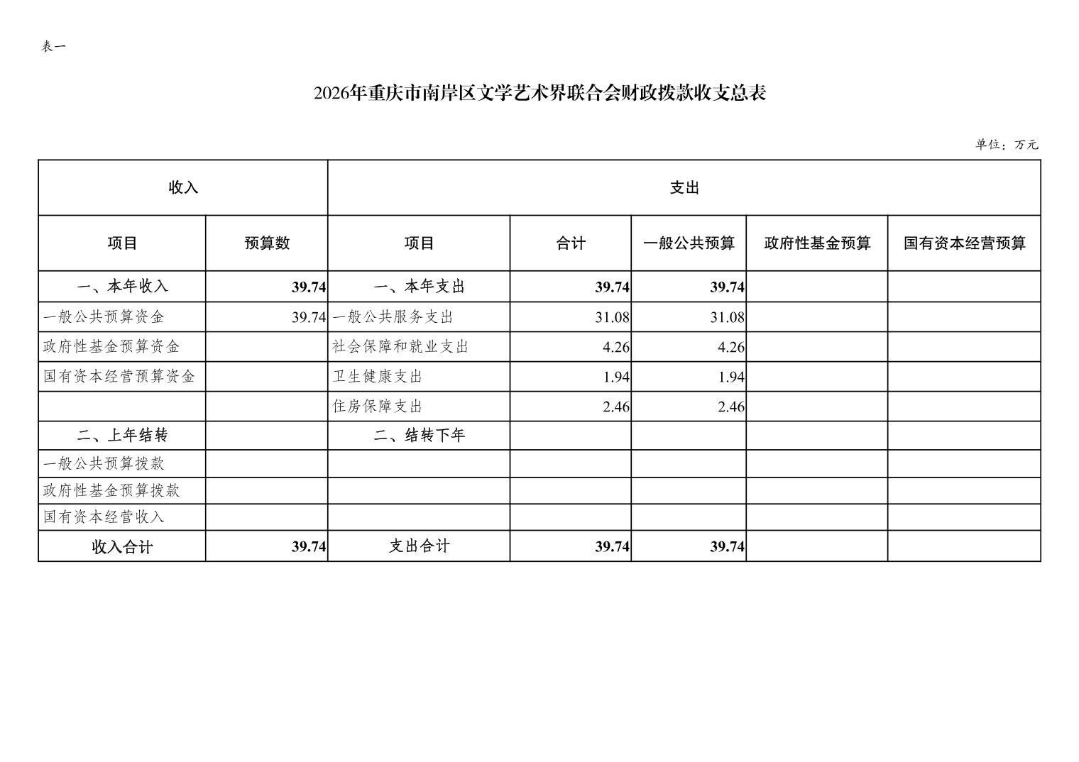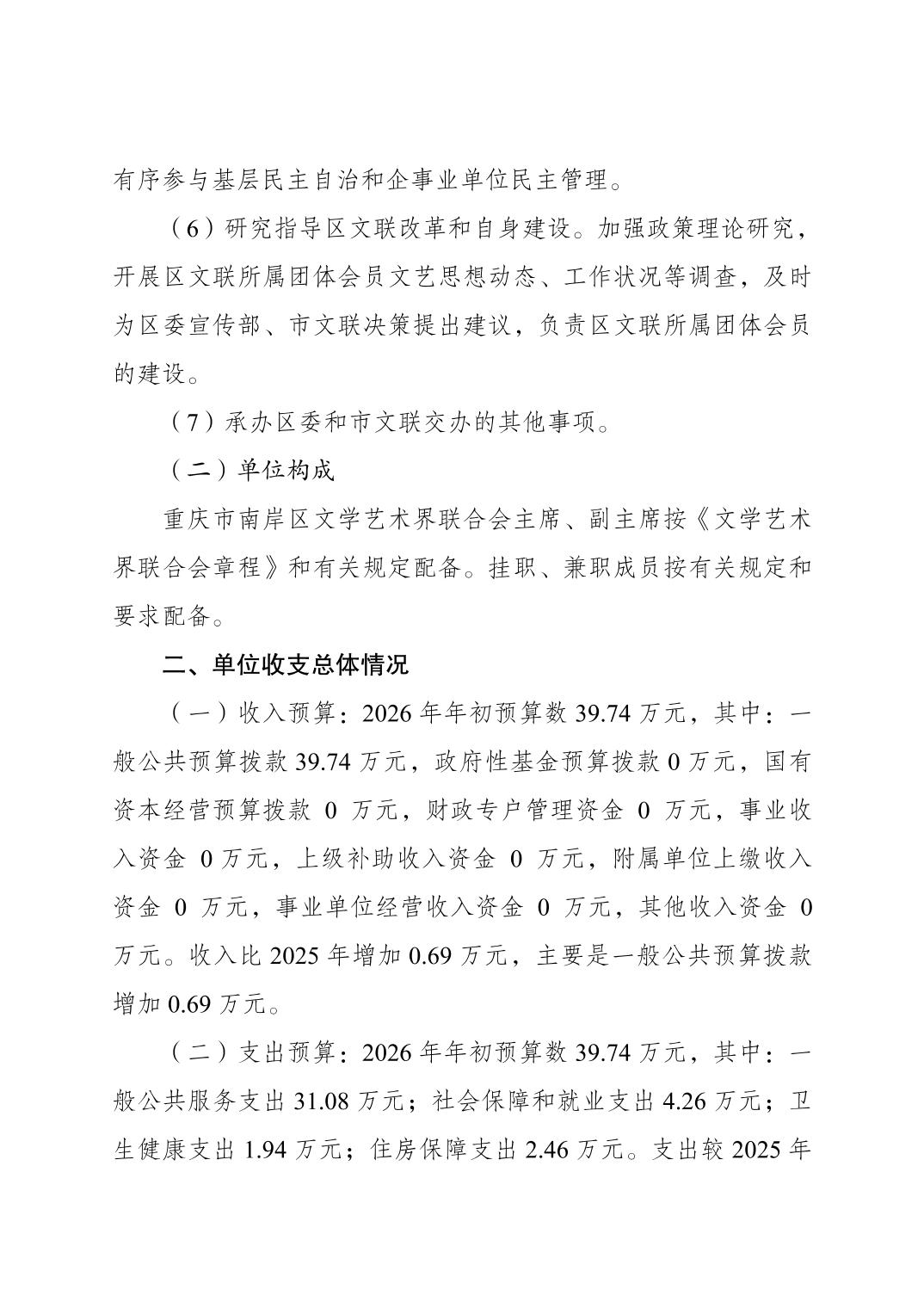 重庆市南岸区文学艺术界联合会2026年单位预算情况说明