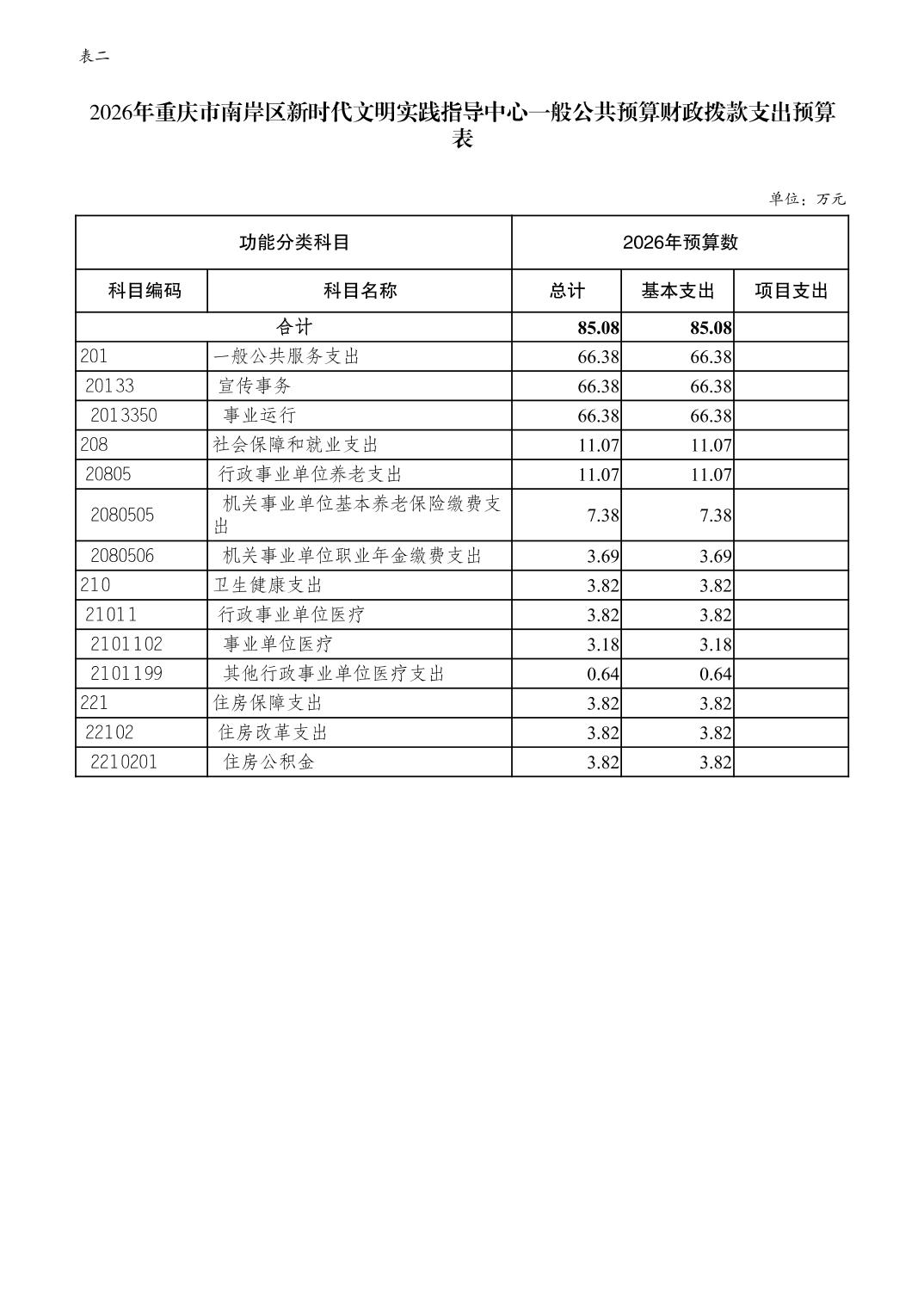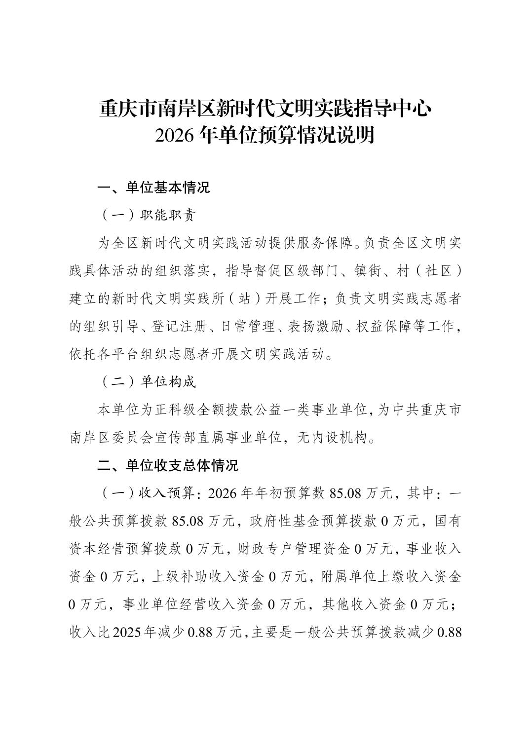 重庆市南岸区新时代文明实践指导中心2026年单位预算情况说明
