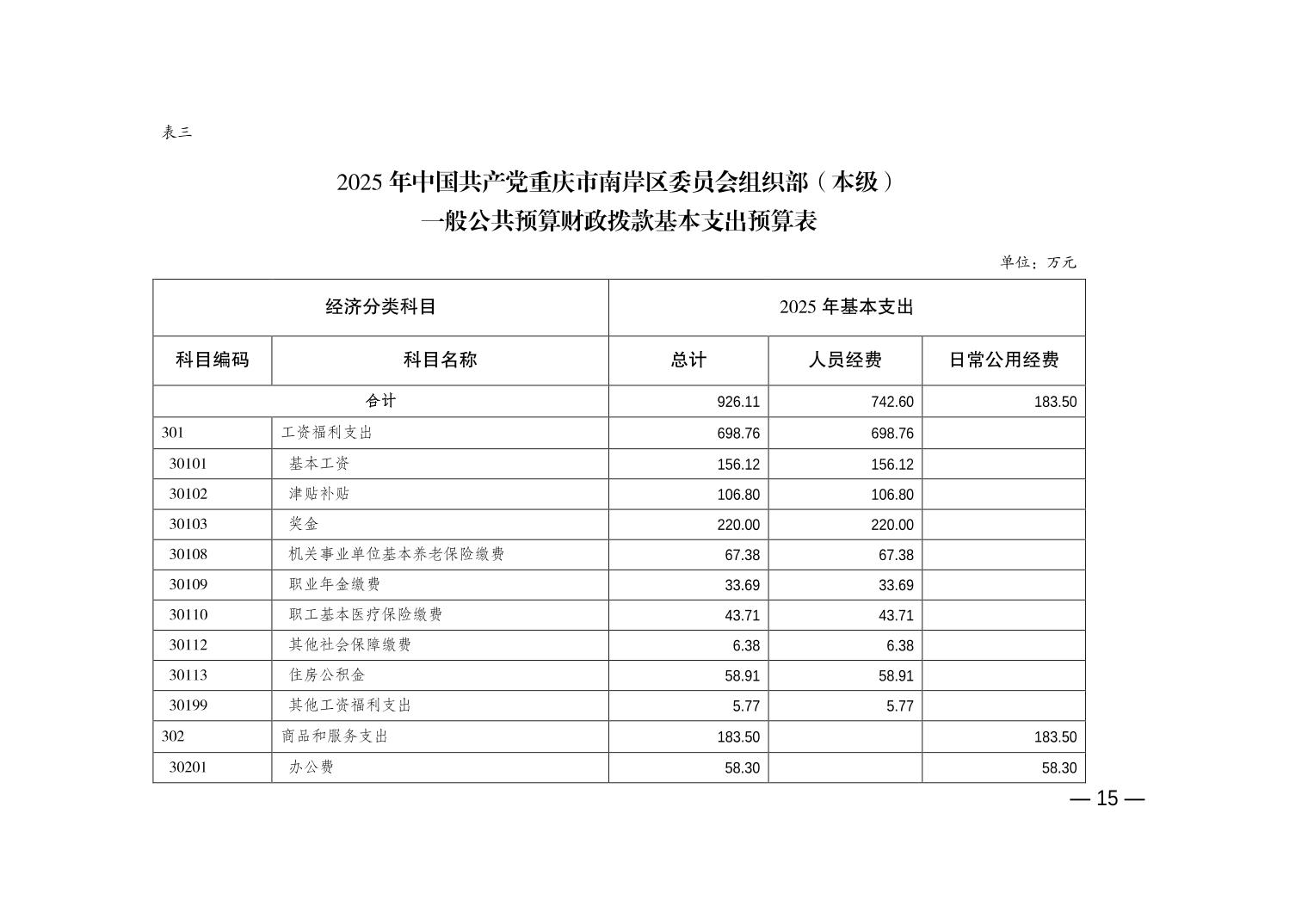 中国共产党重庆市南岸区委员会组织部(本级) 2025 年单位预算情况说明