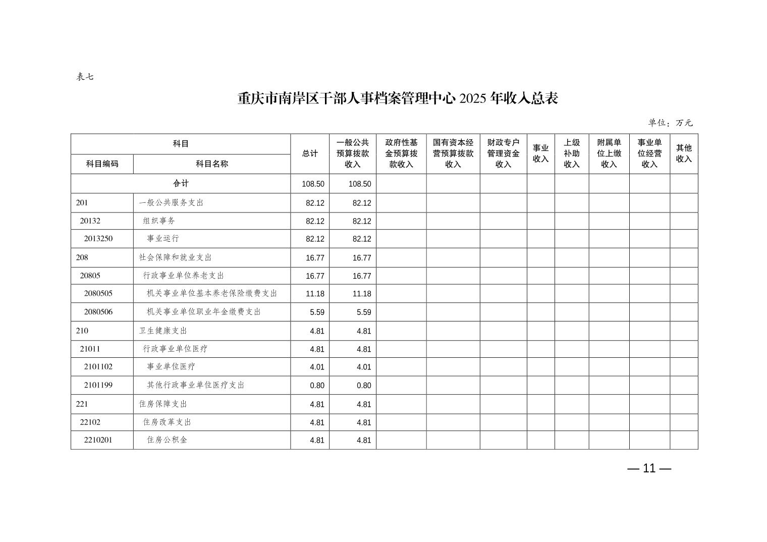重庆市南岸区干部人事档案管理中心 2025 年单位预算情况说明