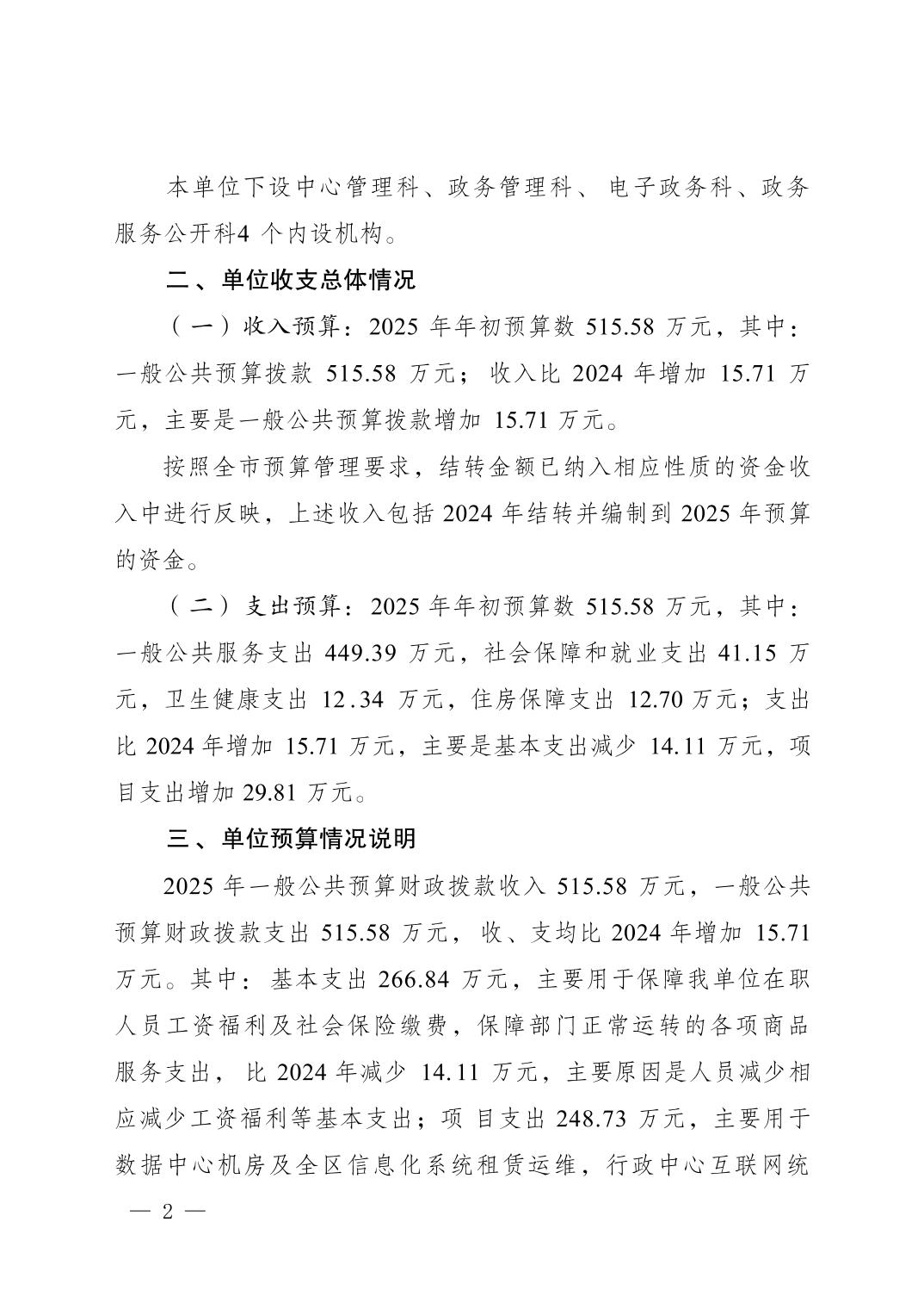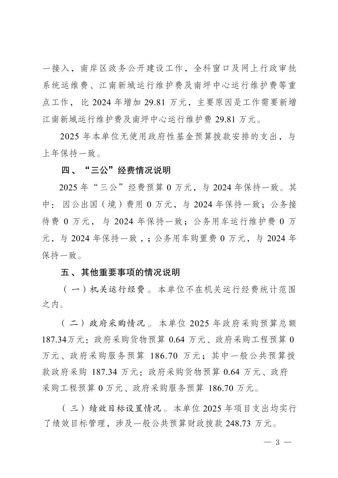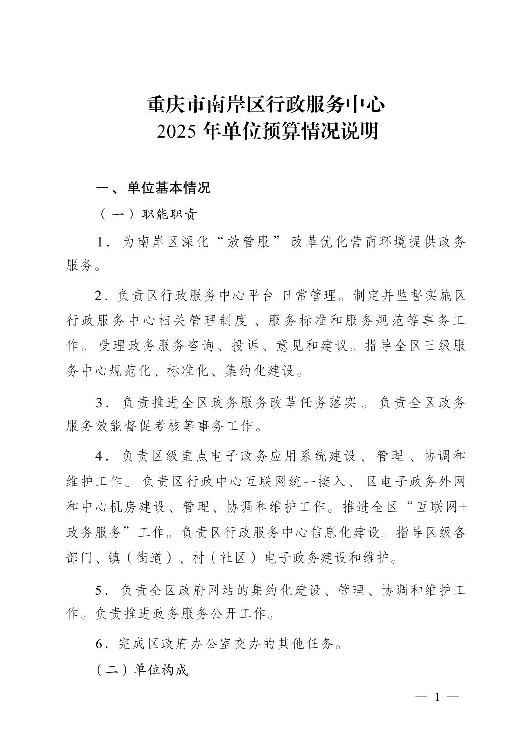 重庆市南岸区行政服务中心2025年单位预算情况说明