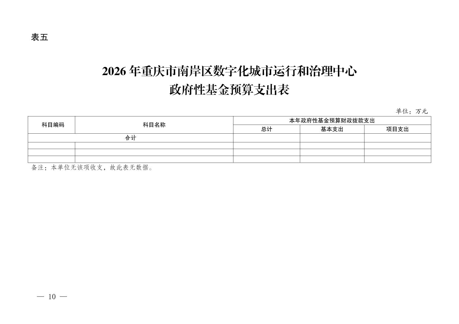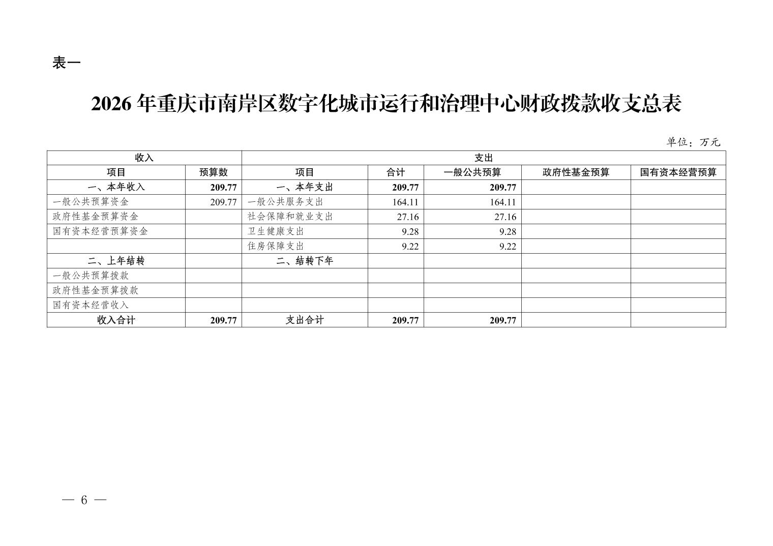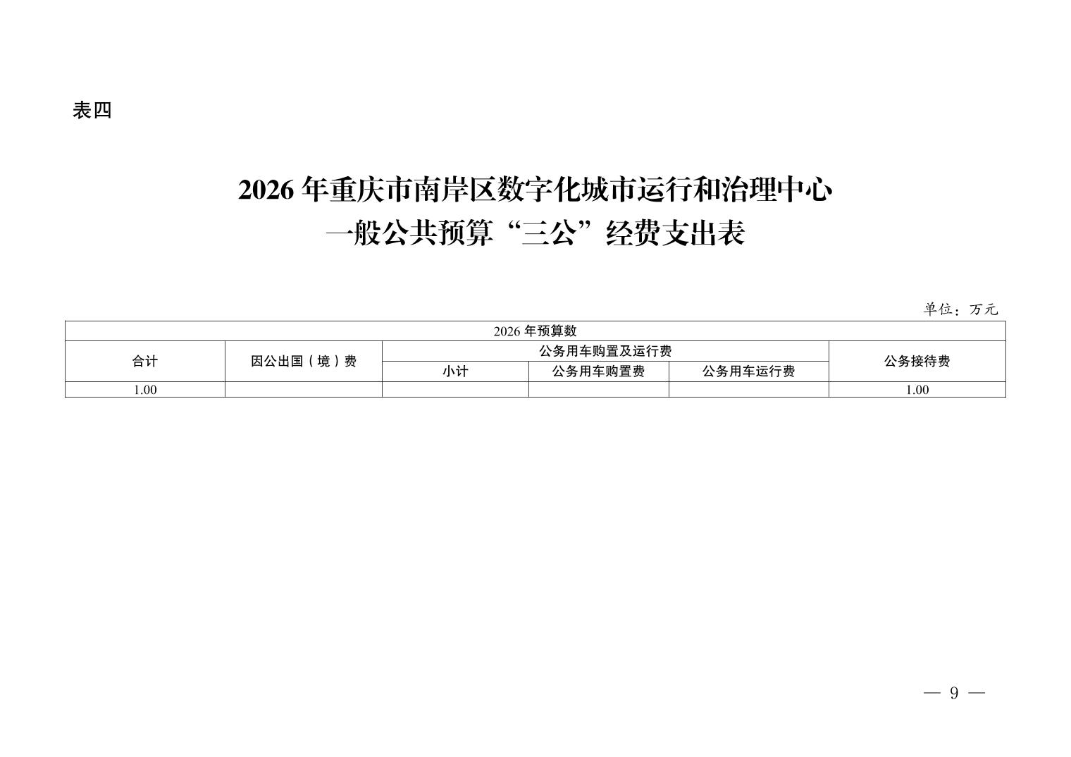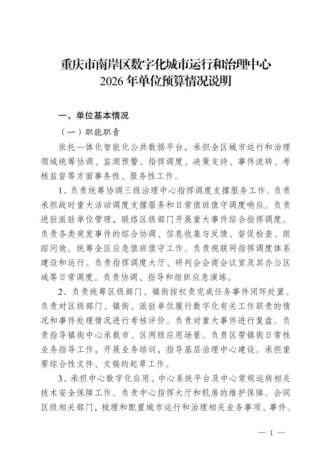 重庆市南岸区数字化城市运行和治理中心2026年单位预算情况说明