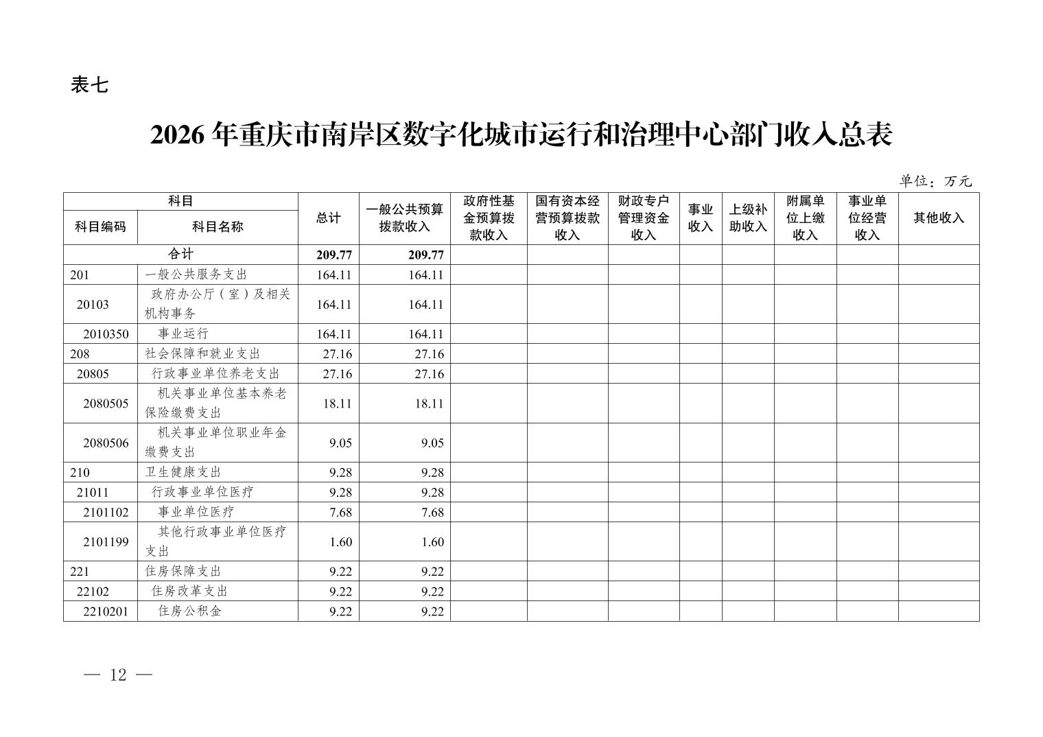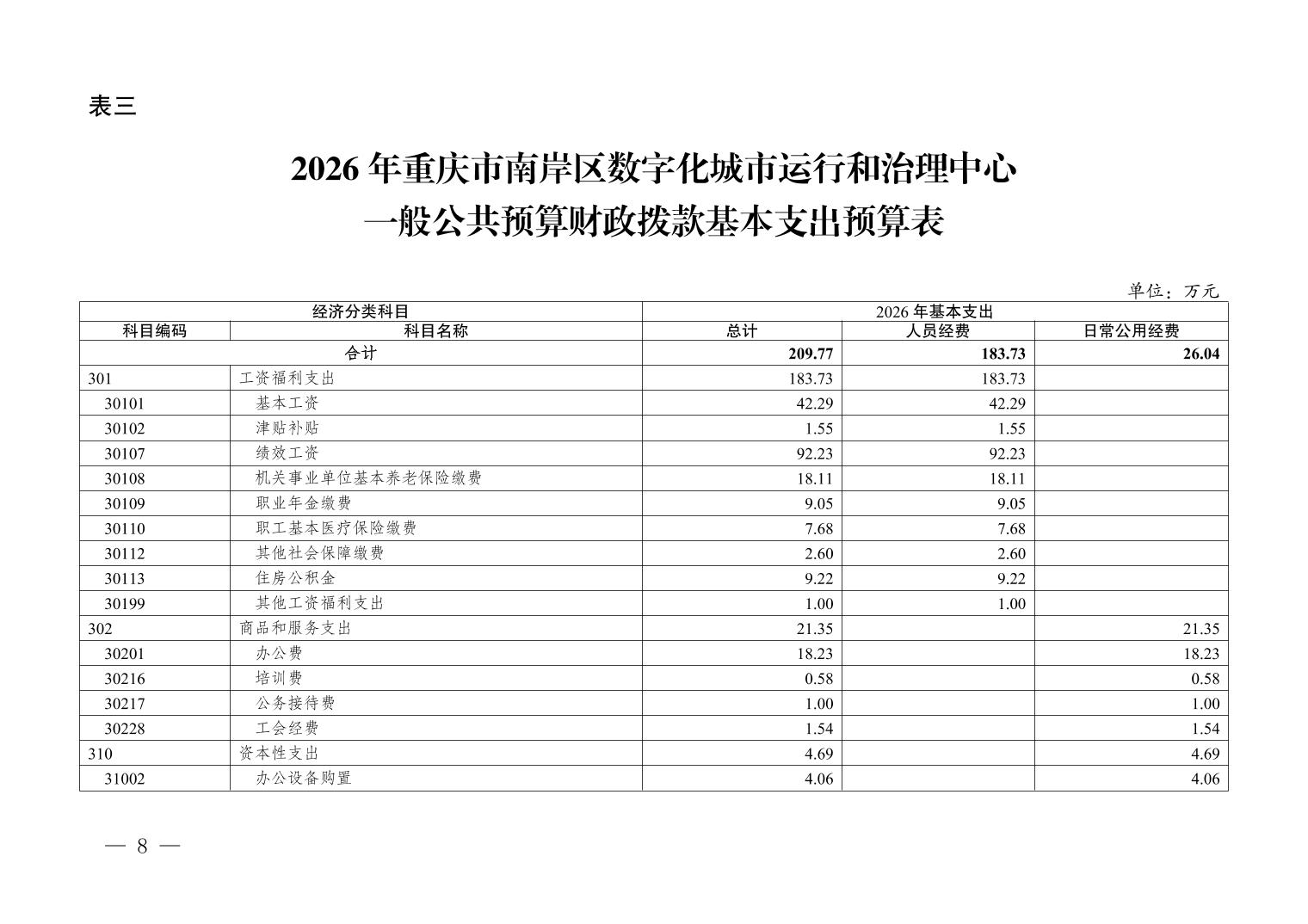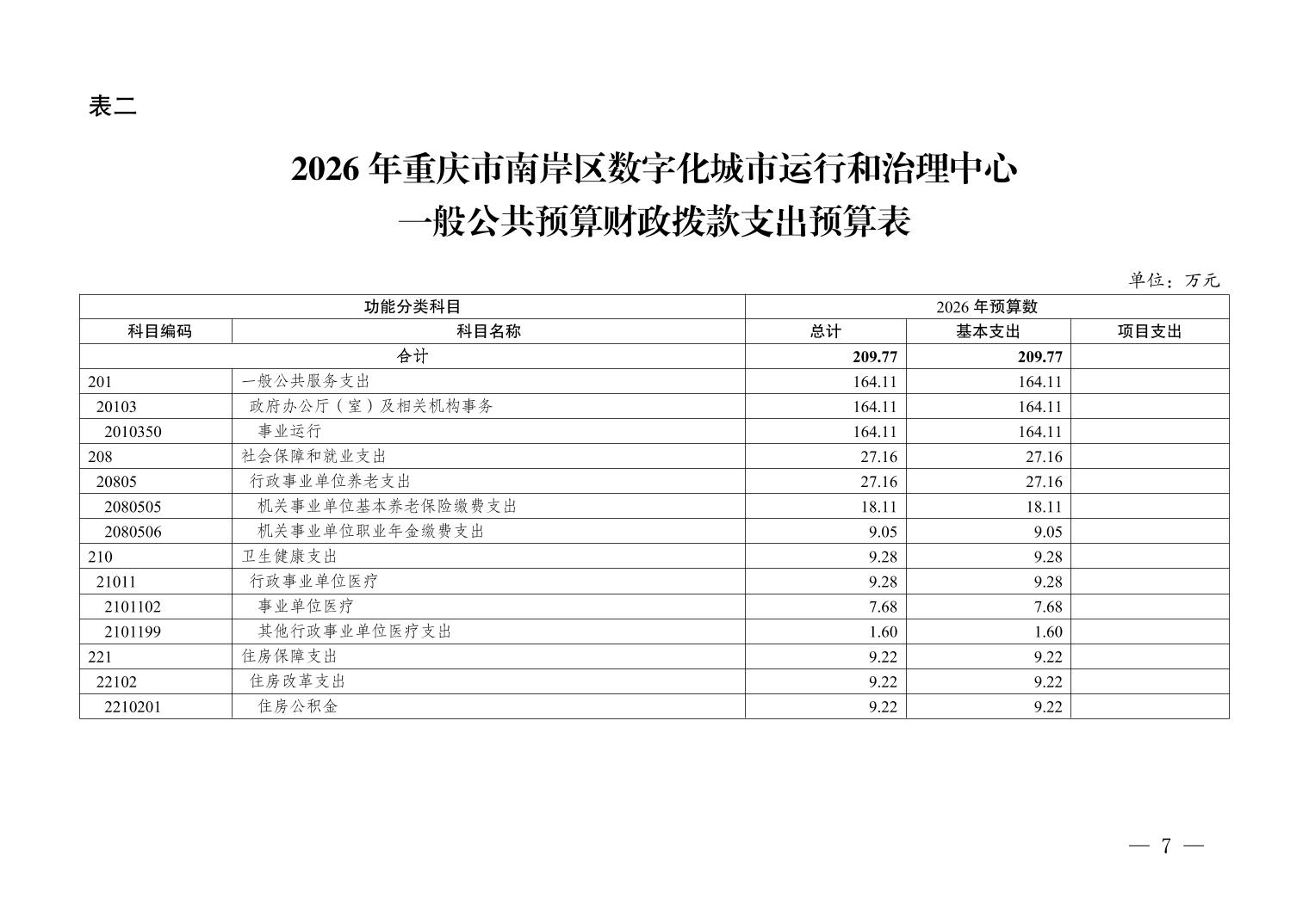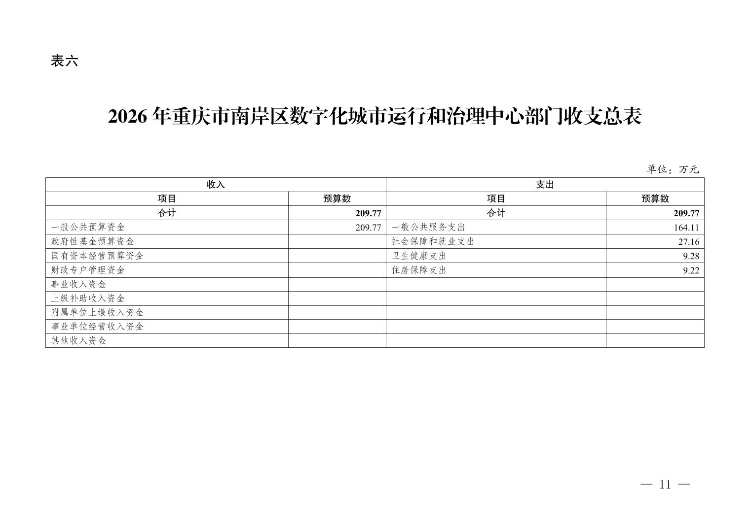 重庆市南岸区数字化城市运行和治理中心2026年单位预算情况说明
