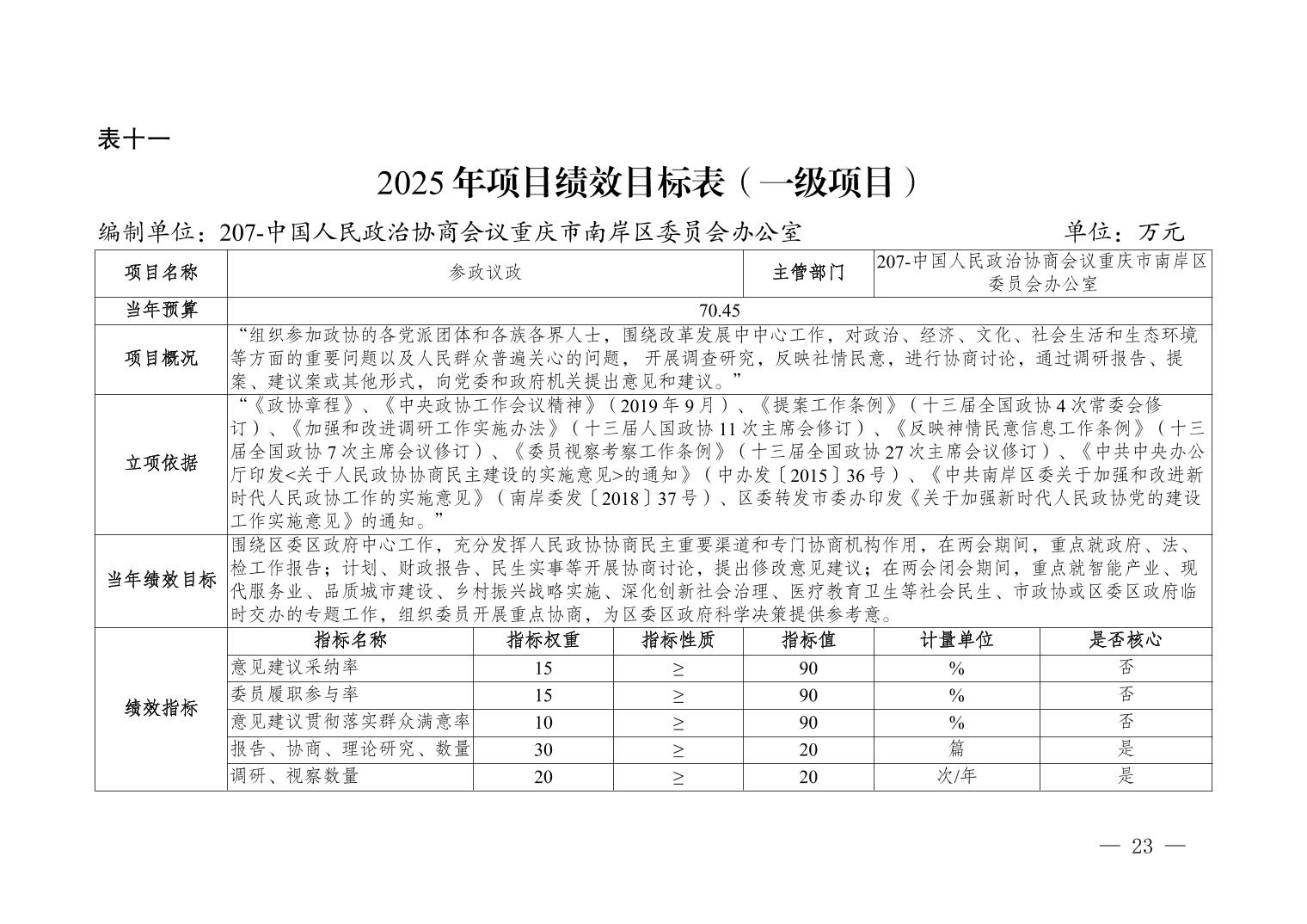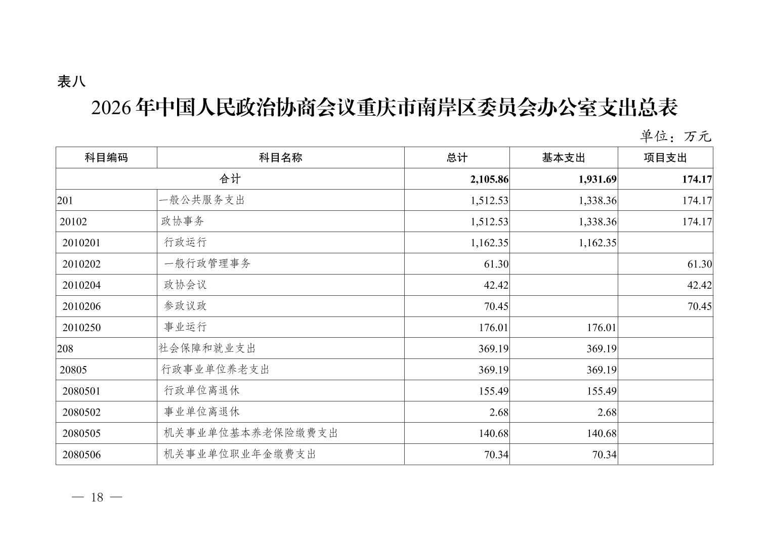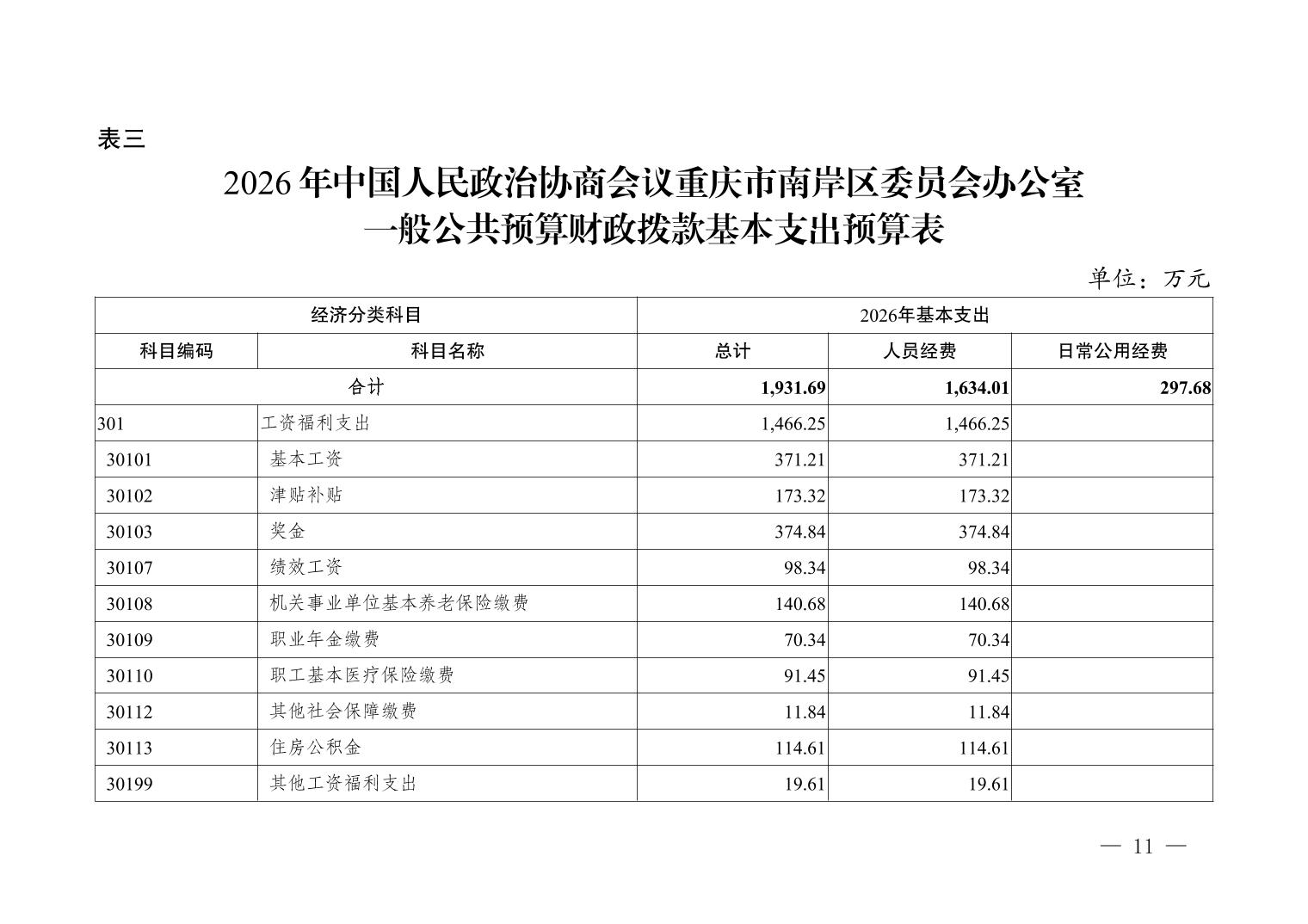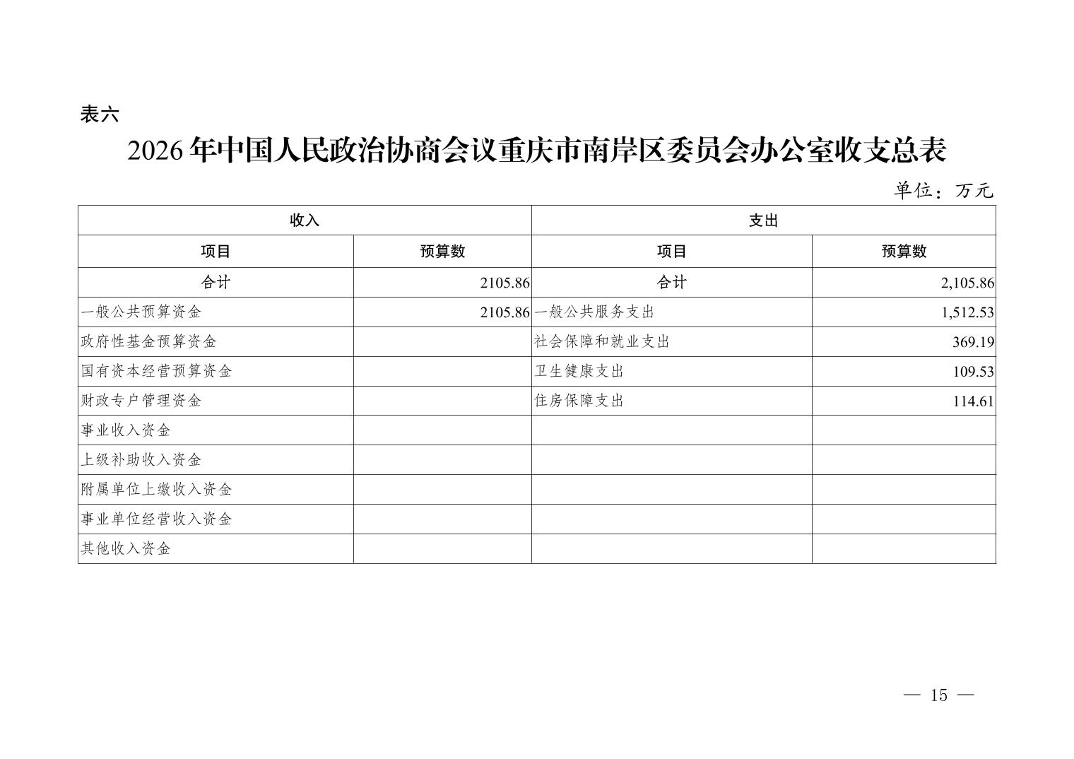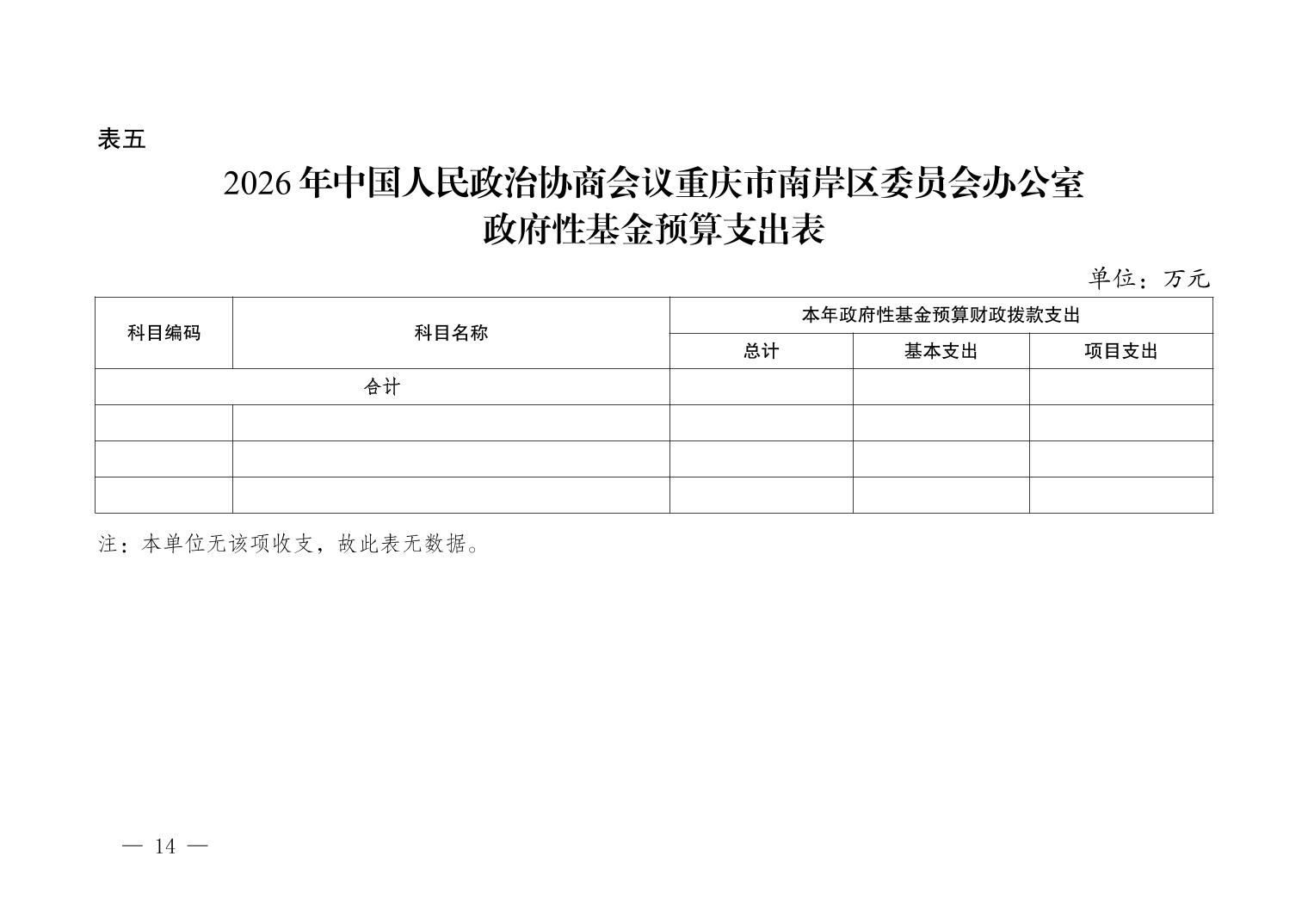 中国人民政治协商会议重庆市南岸区委员会办公室2026年部门预算情况说明