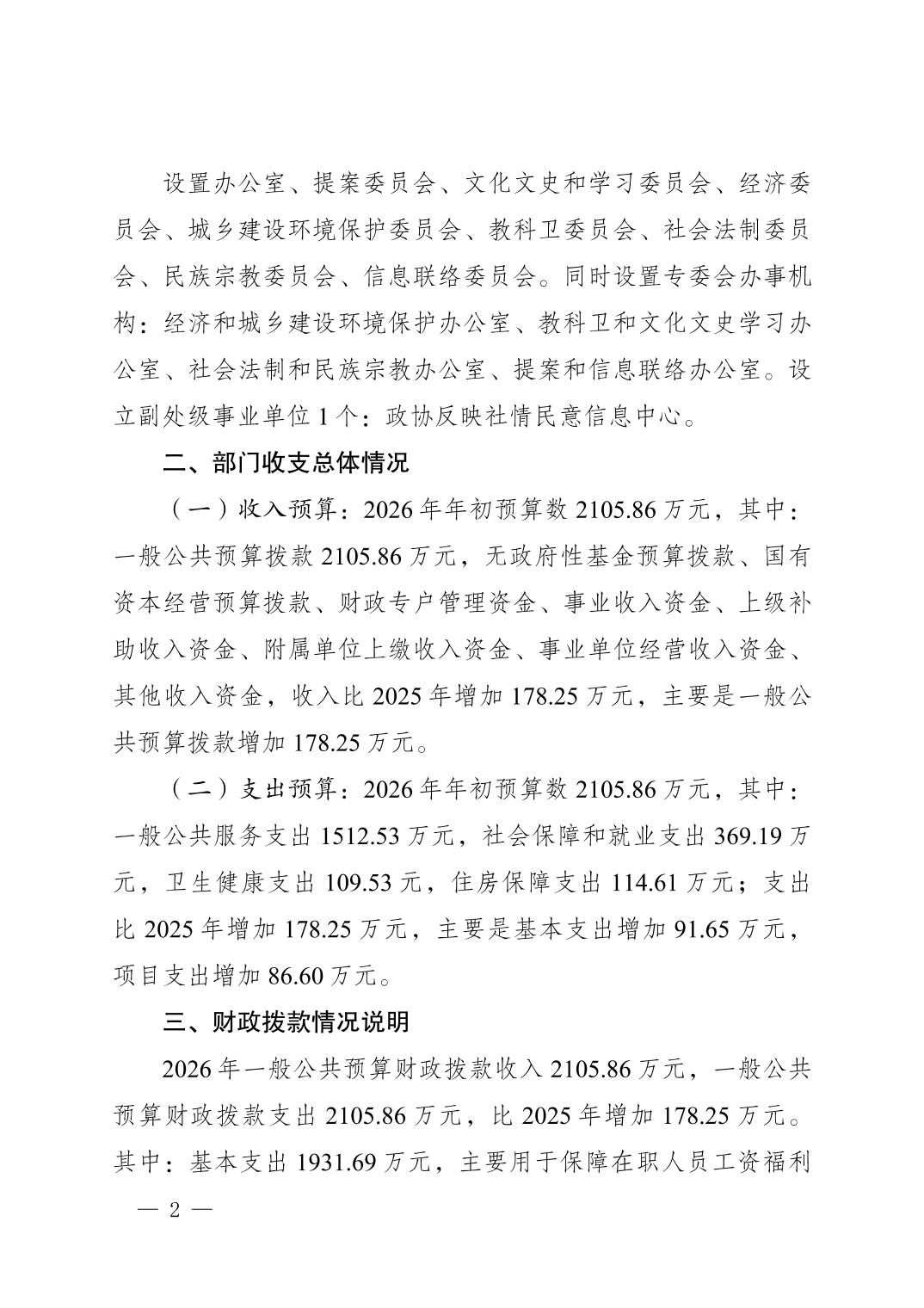首页>政务公开>法定主动公开内容>预算/决算>部门财政预算>区政协办公室