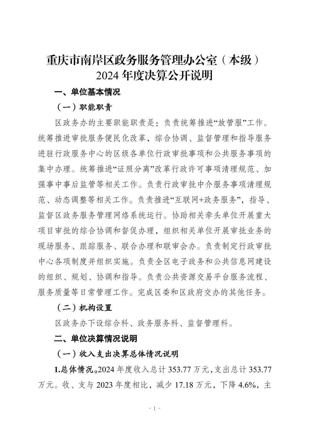 重庆市南岸区政务服务管理办公室(本级)2024年决算公开报告及公开报表