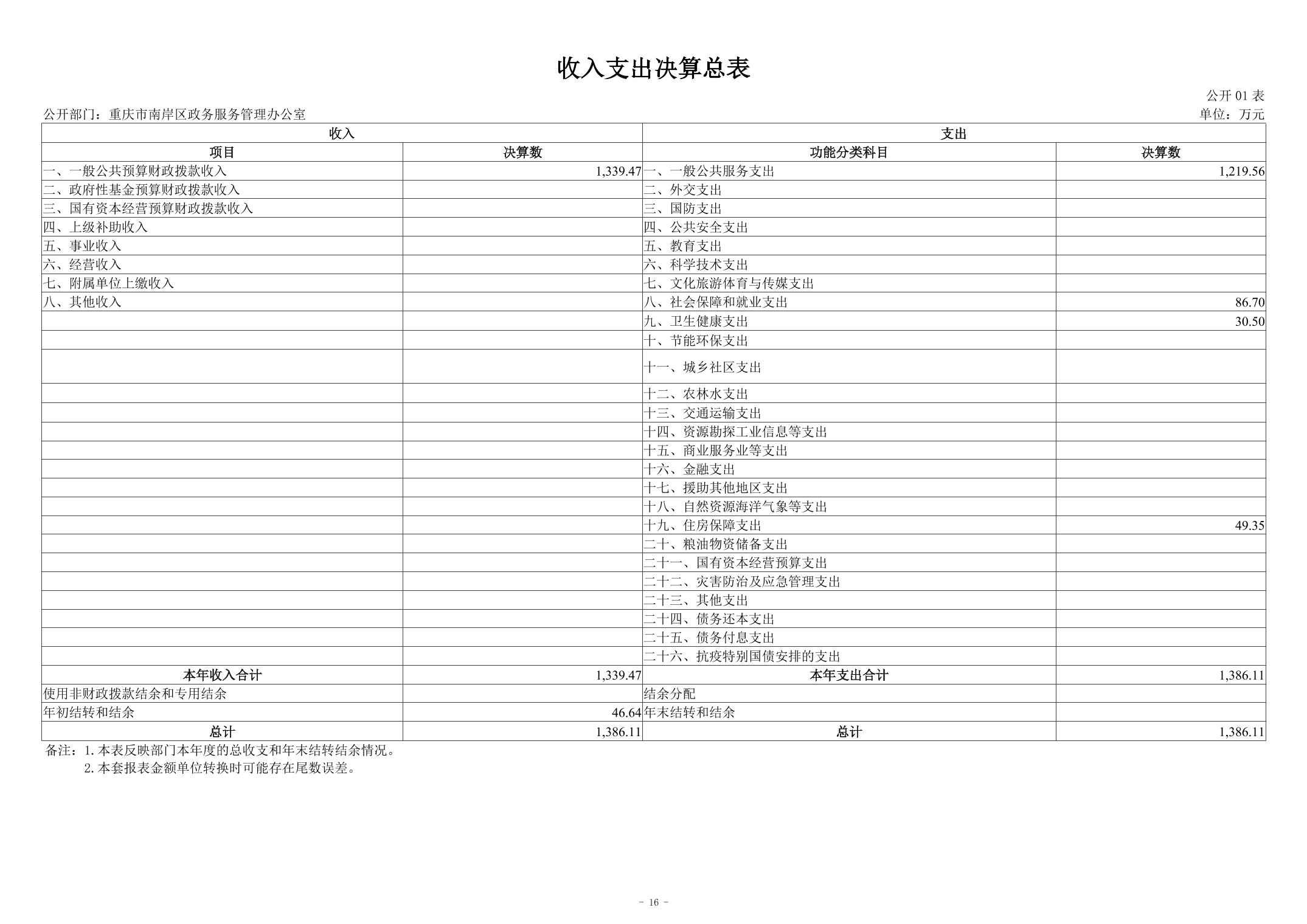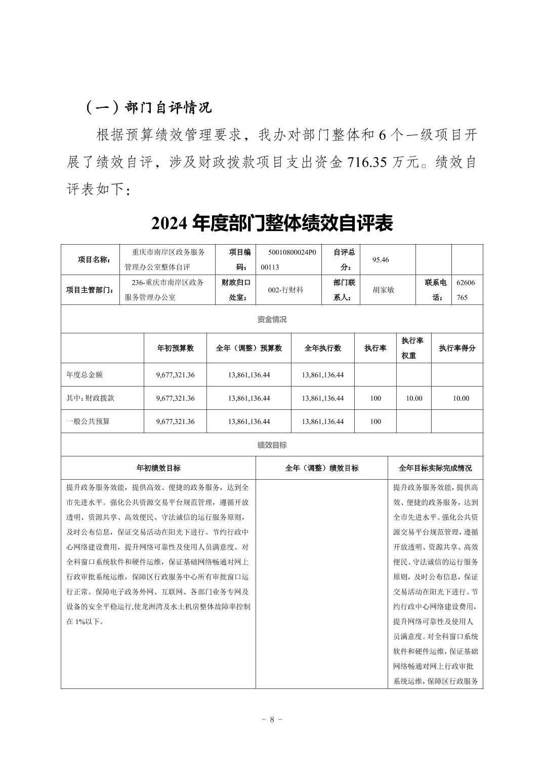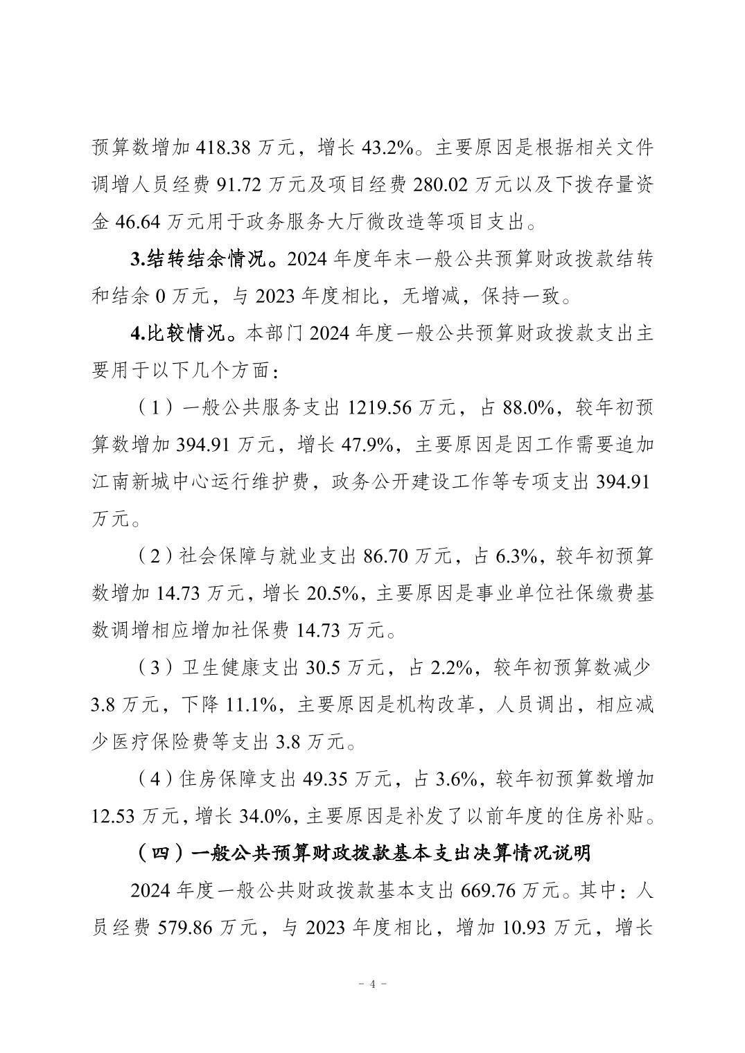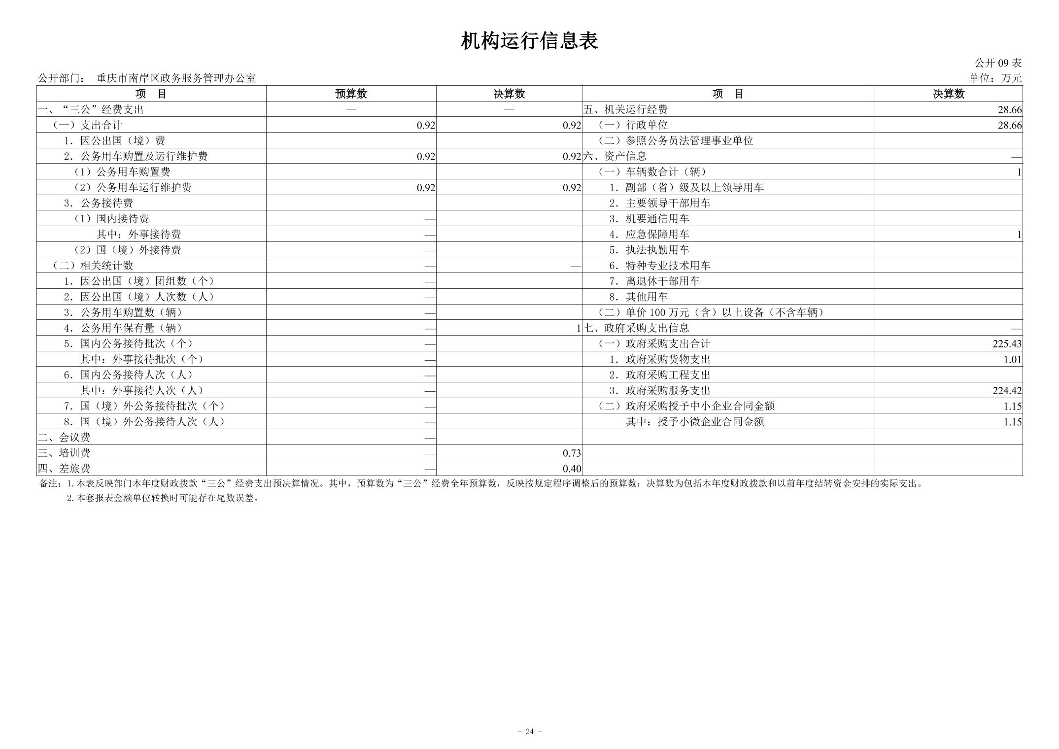 重庆市南岸区政务服务管理办公室2024年决算公开报告及公开报表(部门)