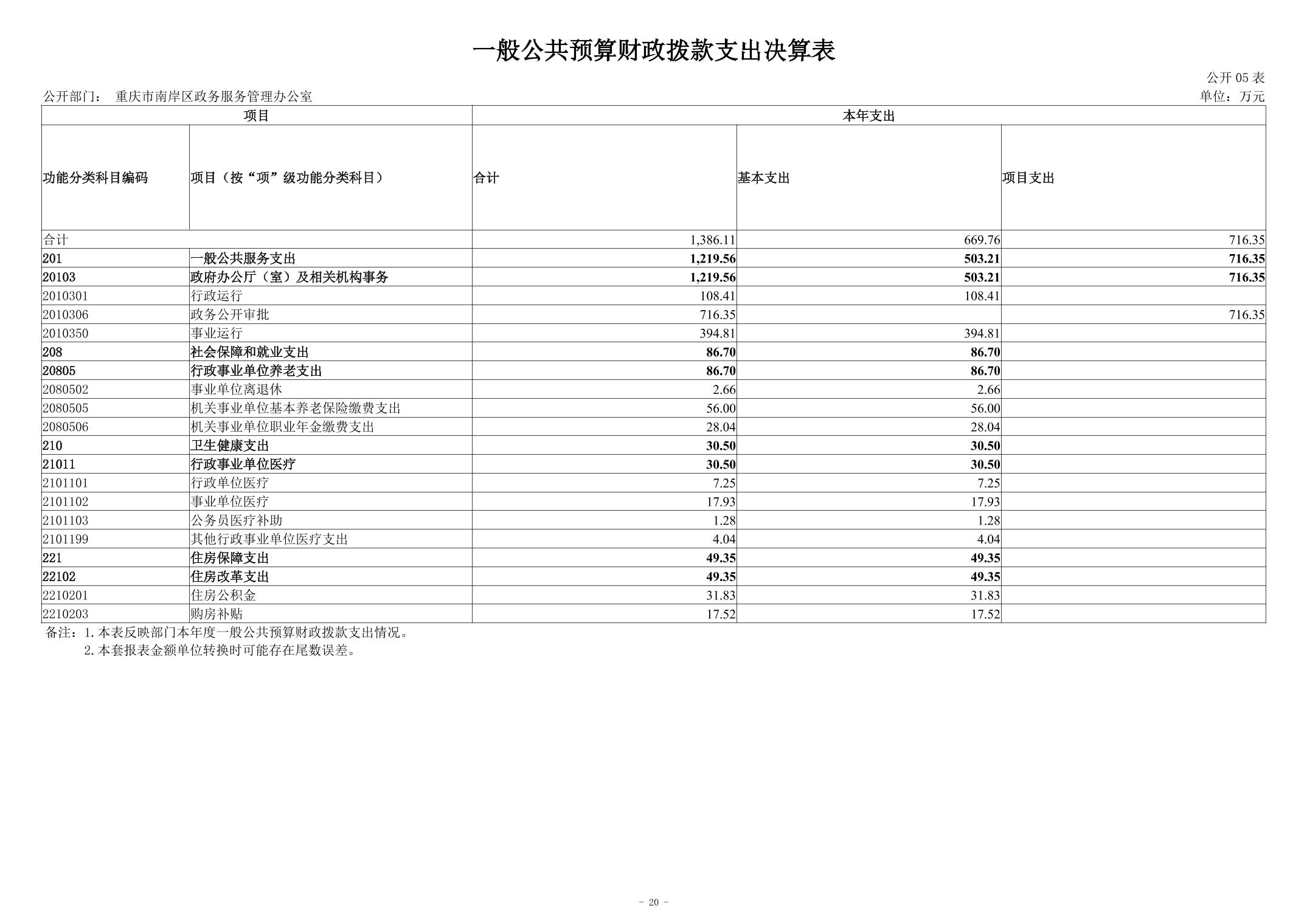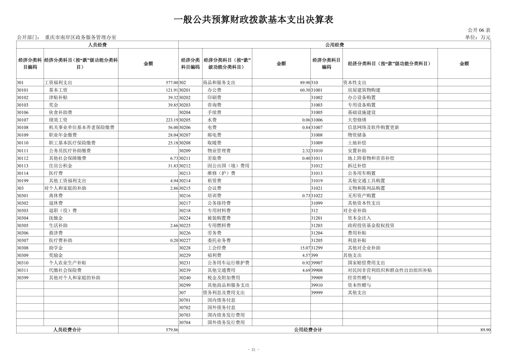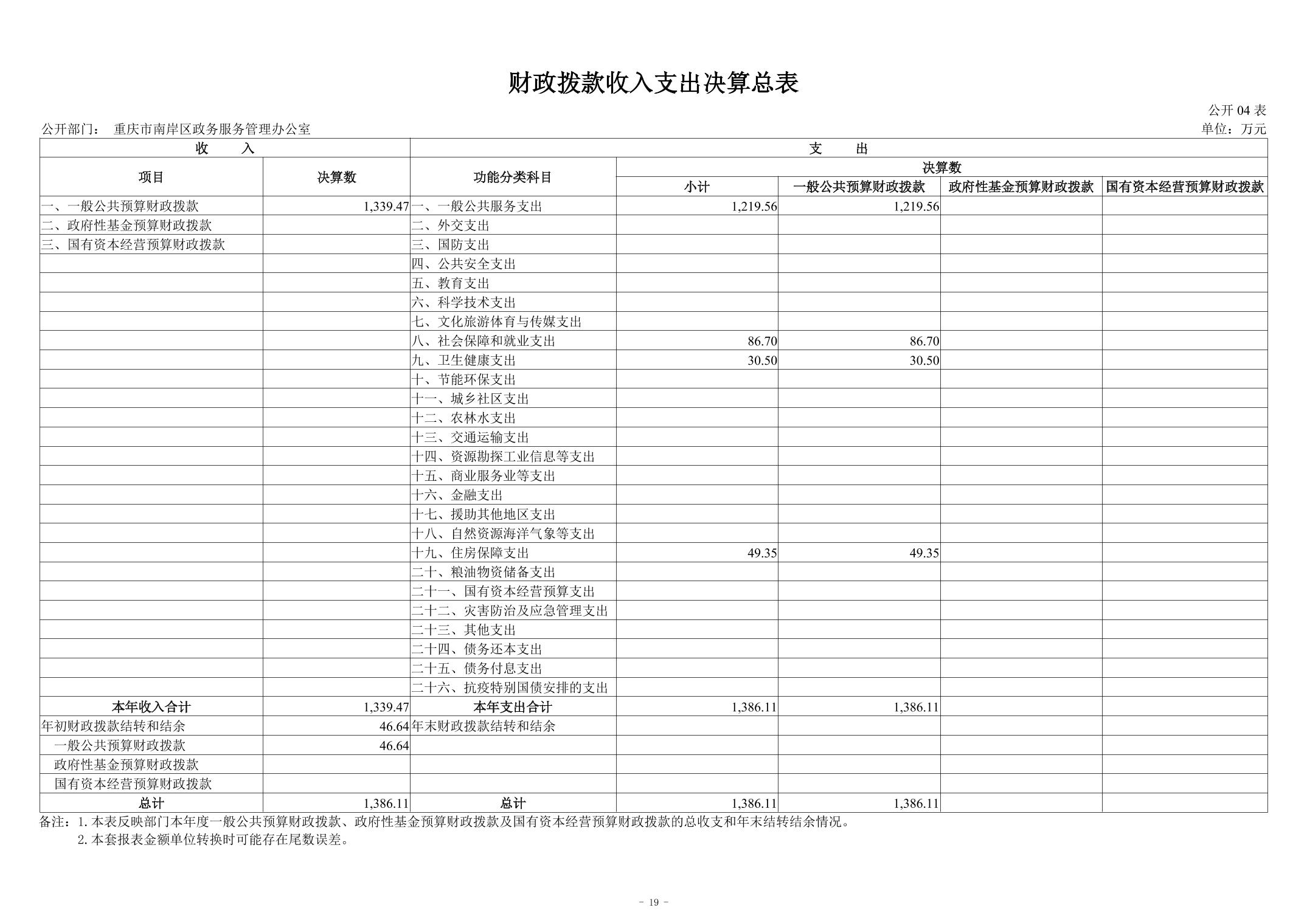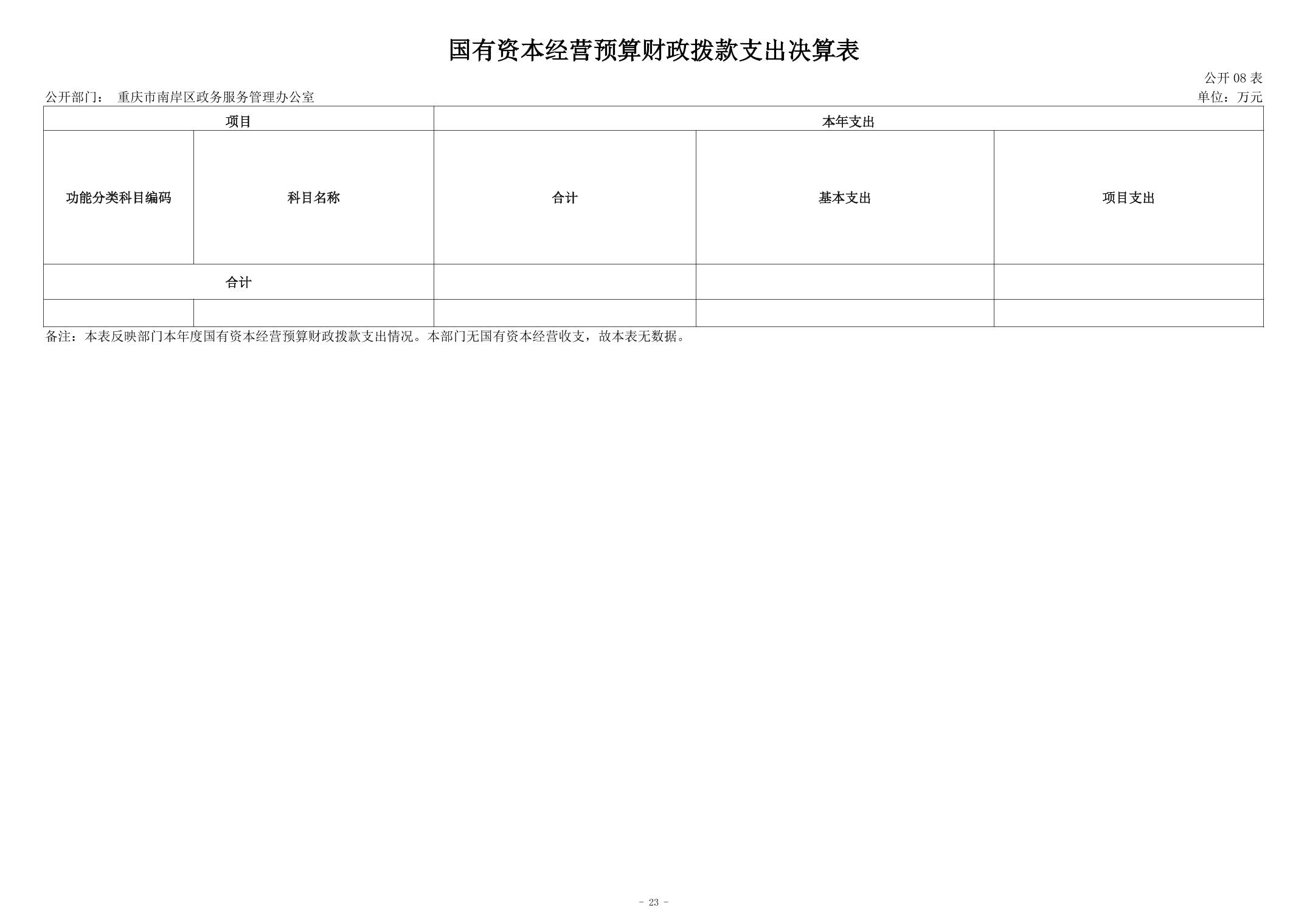 重庆市南岸区政务服务管理办公室2024年决算公开报告及公开报表(部门)