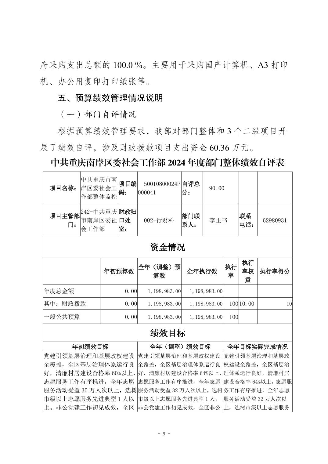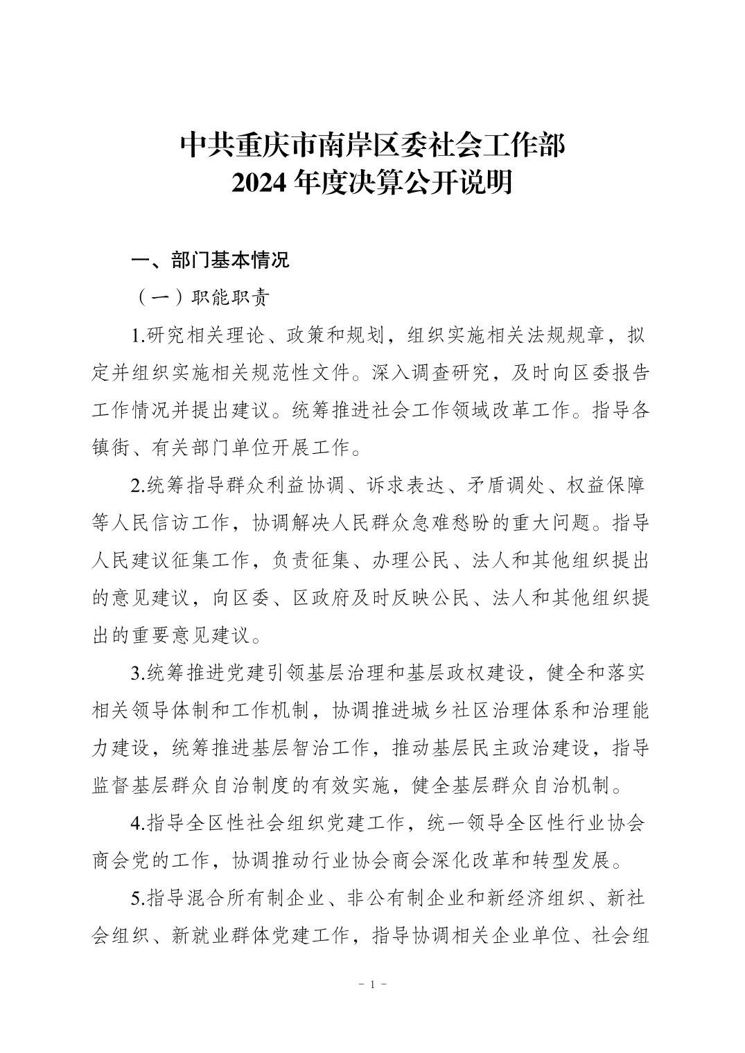 中共重庆市南岸区委社会工作部2024年度决算公开说明