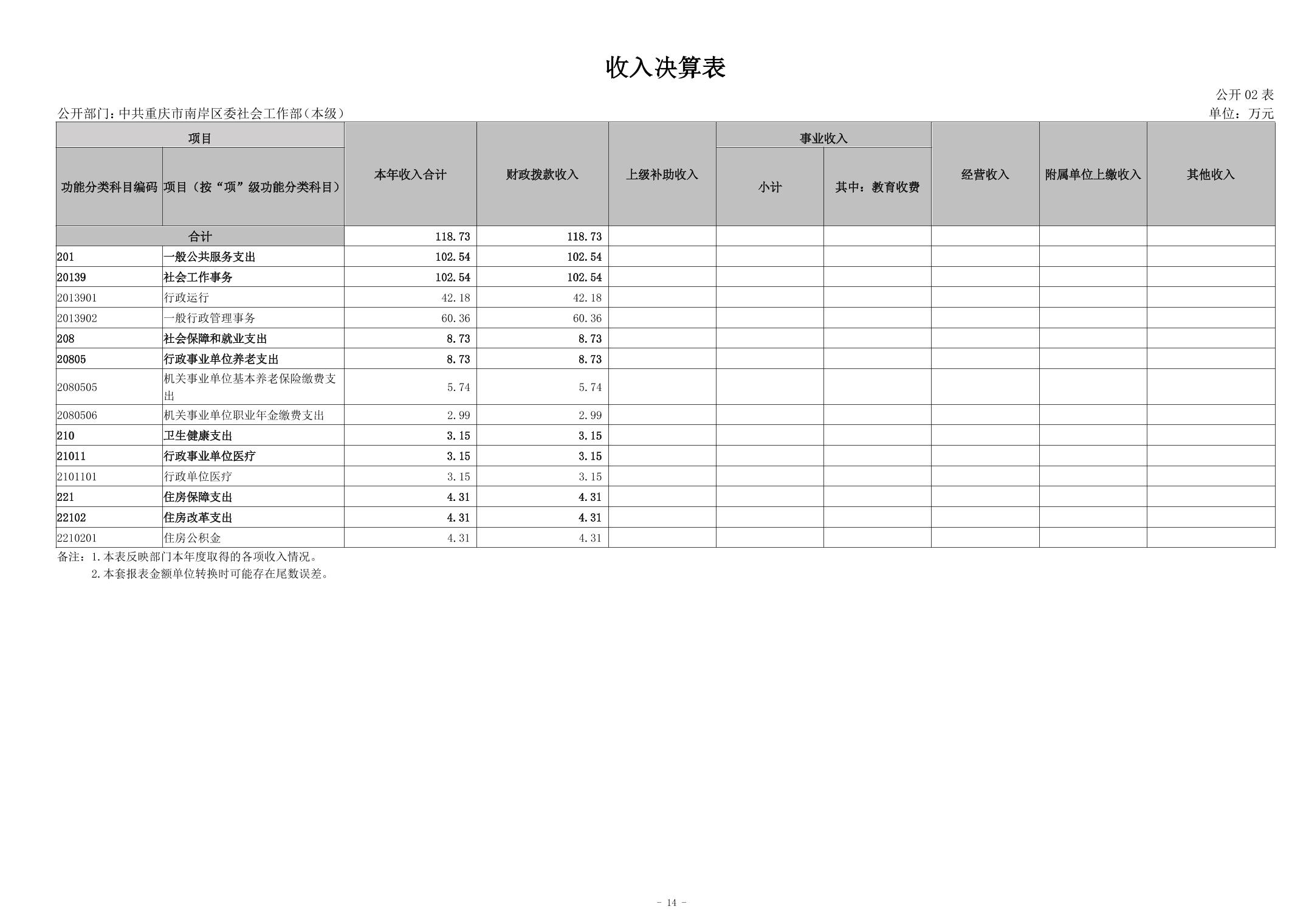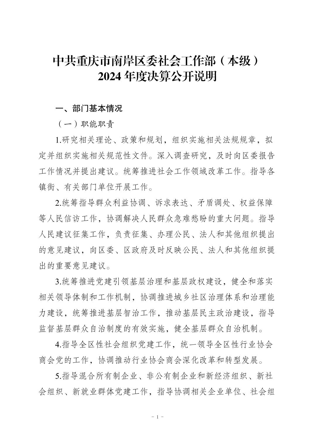 中共重庆市南岸区委社会工作部(本级)2024年度决算公开说明