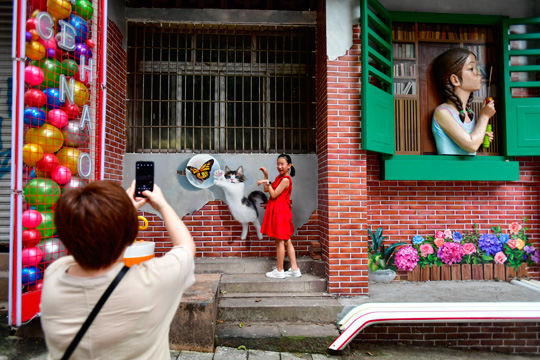 这个暑假,在位于南岸区龙门路的长江索道南站,前来游玩、体验的游客络绎不绝。除了乘坐索道打卡山城美景外,索道站外的龙门路也让不少外地游客流连忘返。近年来,龙门路老旧街巷经过改造升级,变得时尚而有文艺范儿,现代美学融入涂鸦艺术,使得老街缤纷多彩,成为热门打卡地。(记者 崔景印 摄影报道)