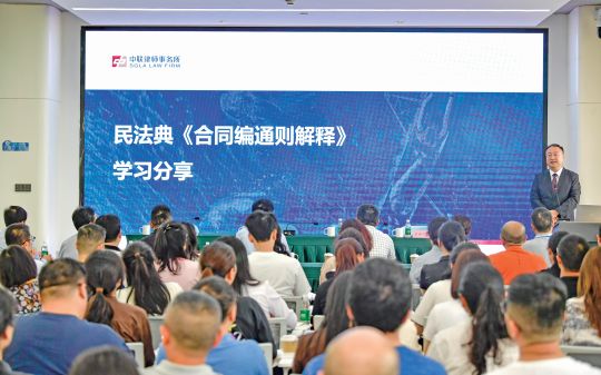 “民法典已经颁布4年,为什么我们还要不断地宣传和解释它?”韩利锋介绍,自2023年12月5日起,最高人民法院《关于适用〈中华人民共和国民法典〉合同编通则部分的解释》开始施行,作为民法典司法实践关于民法典合同编通则的司法解释。韩利锋就《民法典合同编通则解释》进行深度解读,既有理论引导,又融入案例分析,系统阐述了合同编的概要、违法背俗无效的认定规则、情势变更的认定规则、合同人章关系确定规则、撤销权的新变化以及违约金的调整规则,并对企业提出的问题作答疑解惑。