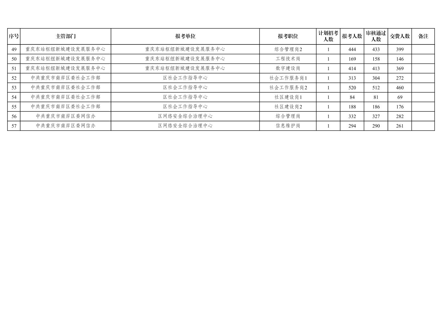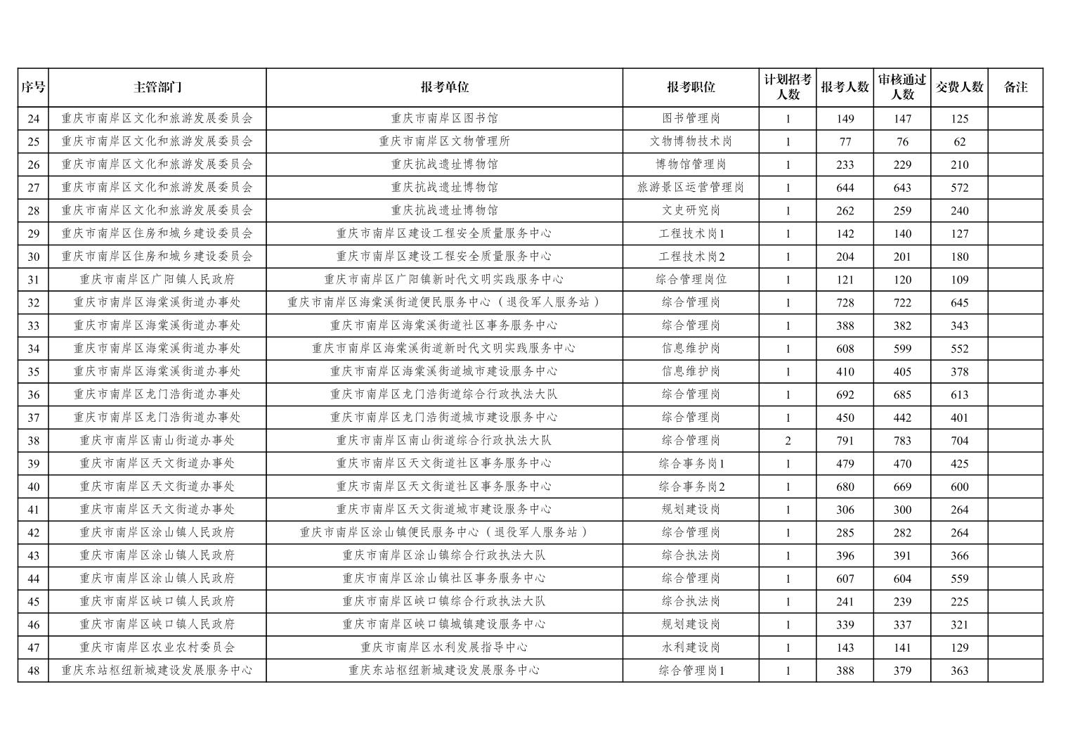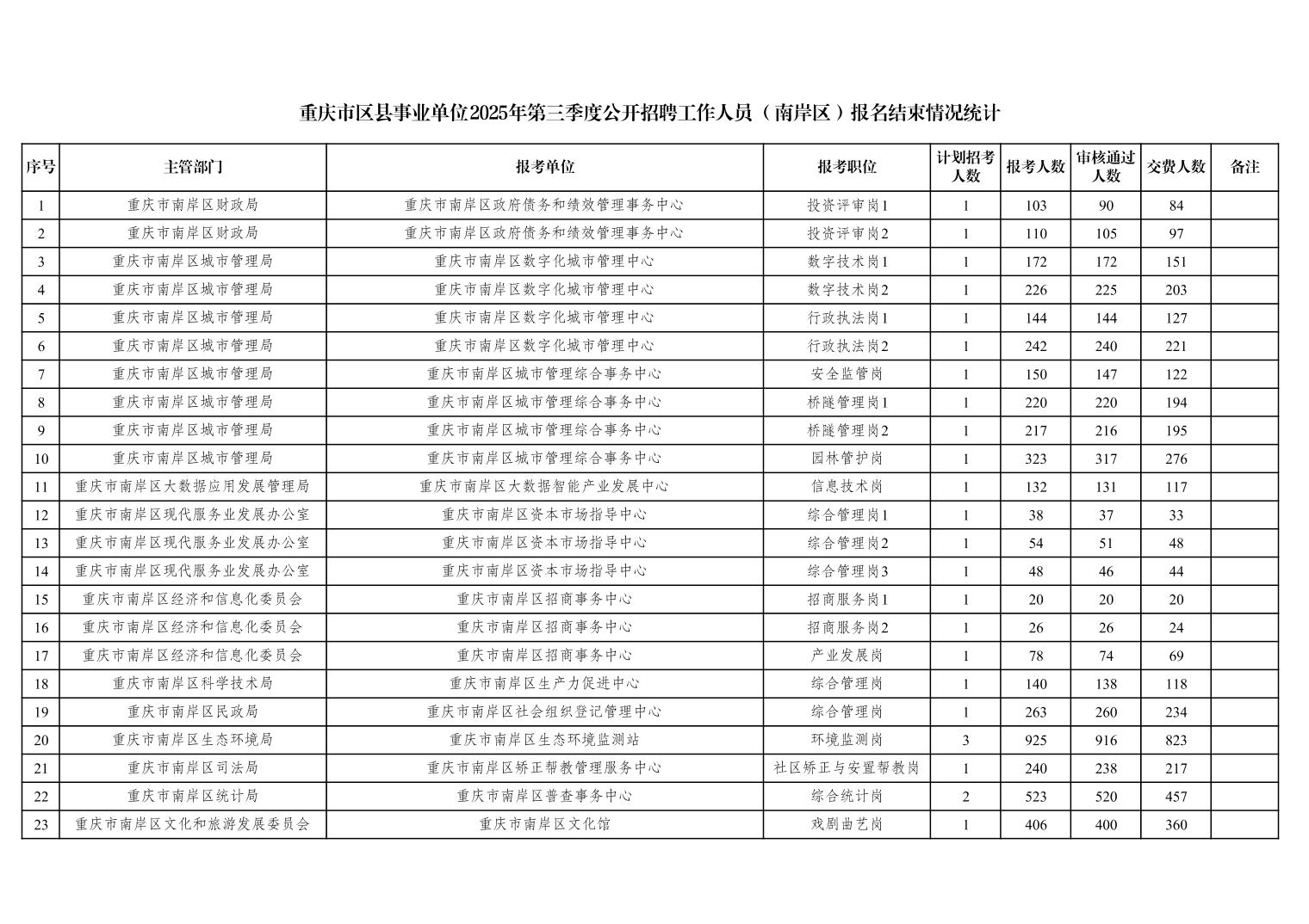 重庆市区县事业单位2025年第三季度公开招聘工作人员(南岸区)报名结束情况统计
