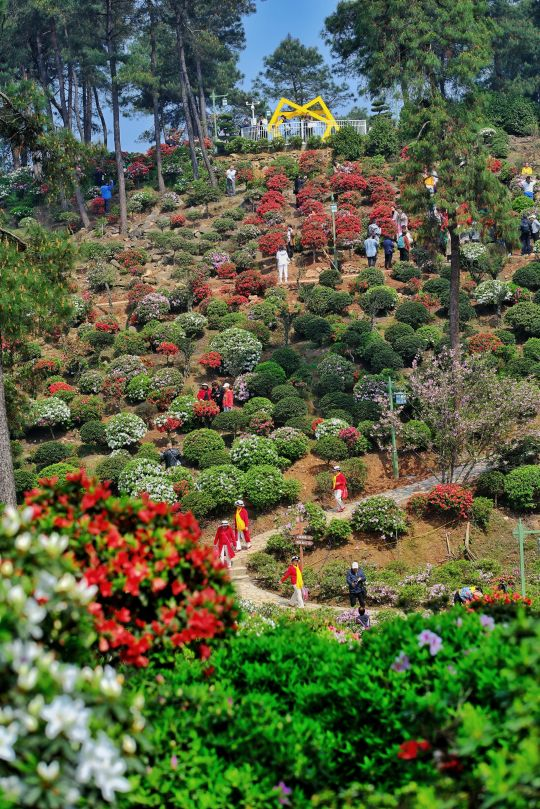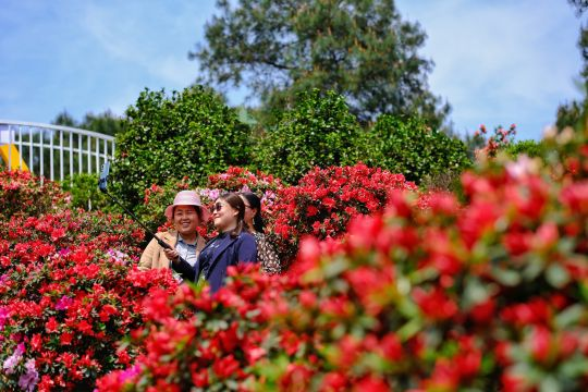 站上杜鹃园的云台,俯瞰花开盛景,骄矜的白、含羞的粉、热烈的红……50000余株杜鹃次第绽放,漫山开遍,层林尽染,让人大饱眼福。走近细看,春雨刚过,露珠缀于每一叶花瓣,水润剔透的杜鹃花,赏的是花草勃发的生机,细嗅是繁花似锦的诗意。