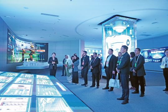 考察中,由中国移动打造的中移物联全球展示中心给嘉宾们留下了深刻印象,嘉宾们走进中移物联网“五个一流”工程,以“万物起源—万物花开—数字虫洞—万物生辉—万物共生”为主线,全方位展示物联网的前世今生与虚实共生理念,了解5G物联网“4331”产品体系和130种测试能力的技术体系。相关负责人表示,中移物联网是国内第一家由运营商成立的专业物联网运营企业,聚焦云计算、大数据、芯片、操作系统等数字技术持续锻造核心能力,用高质量物联网产品与应用服务,推动数字经济和实体经济融合发展。