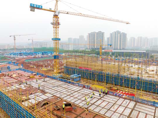 东站站房进入全面施工阶段,目前正在进行车站顶部区域施工装修。