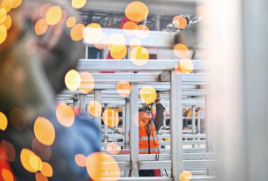 重庆东站中铁建工集团项目施工现场火花四溅,工人正在焊接钢架,奋战四季度。