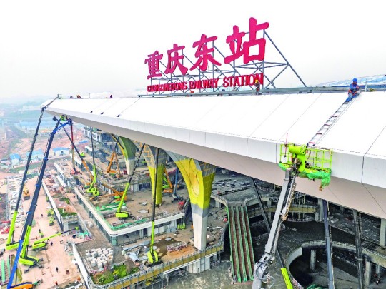 重庆东站建设现场,站台主体已经完工。